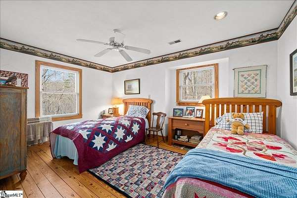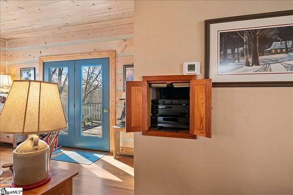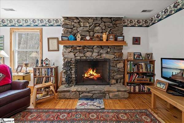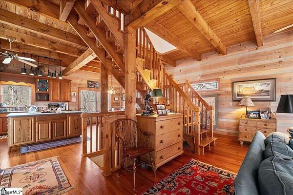 This 1995 custom-built log home with 17.80 acres is located in a small community across from Table Rock State Park. Located just a mile and a half to the state park making it an easy walk. This is a chinked log home which adds a lot of character to the exterior and interior. Doe Run is right off of Hwy 11 and just across the road from the state park. Oolenoy Lake is a part of the state park and this lake butts up to the sub-division. It's great for kayaking or canoeing. 512 Doe Run is all the way back in and on the right. You will see Rhododendron Dr. This is the name the owners picked just for their driveway. Once you open the gate, you will drive through a wall of rhododendron bushes on both sides. Just simply beautiful and they will be blooming in a couple weeks. The square footage on the main and second level is 1950 sq. ft, while the partial finished basement offers another 992 sq. ft. These specs are from the county records. The home has 3 bedrooms plus 3.5 baths. The main level offers a very large 20' x 24' great room and a custom-built stone fireplace with deep hearth. The floors are heart pine along with the kitchen cabinets. A couple of stained glass windows add a special touch to the great room. The kitchen and dining offer plenty of room for large gatherings. There is ample counter space for food prep. A half bath is also on this level. There is a 12' x 40' deck out back where you can hear the creek just below and also watch wildlife. Out front you can enjoy an 8' x 40' covered porch where you can sit in your favorite rocking chair. If you like privacy, you will not find anything better. The upper level offers 3 bedrooms and 2 full baths. The primary bedroom is 20' x 24' with another stone wood burning fireplace. There is more than enough room for extra furnishings. There are two other bedrooms with a second full bath. The upper level features all hardwood floors. The basement level offers another full bath plus it is set up for a convertible bedroom area. The laundry area shares a space in the workshop. A separate room is where the HVAC, hot water tank, well tank and service panel are located. Incidentally one big plus is the well water in this area. It has the best tasting water in the entire Upstate if not the country. I personally know this as we lived in this community for 20 years and I have tasted fresh water (springs and well) in many states in this country and I have yet to taste any better water. The location makes it easy to get to Lake Keowee and Lake Jocassee both within 12-14 miles. These are some of the finest lakes in South Carolina. It is an easy drive to Greenville (24 miles), Easley and Pickens (9-15 miles). Schools and medical clinics are all an easy drive. Located only 30 miles to Brevard, NC, this home is just off scenic Hwy 11.