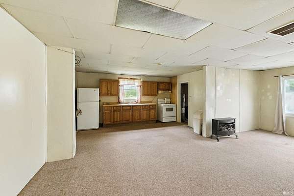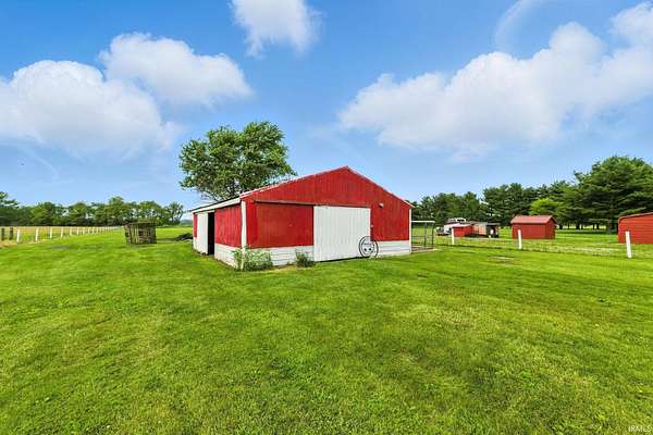 Discover the perfect blend of rural charm and convenience with this 2 bedroom home featuring a bonus room that could easily be a 3rd bedroom, office or guest space. Nestle on 1.67 acres just outside the city limits of Kirklin, this property is ideal for those seeking space, privacy and endless potential. The home boasts a brand new roof and siding, giving it great curb appeal and long term durability. Inside, the space is ready for your personal touch to create the home of your own style and finishes. Outside you will find a 32 x 40 pole barn that was once used for horses & also outfitted as dog kennels, offering great flexibiitly for animal lovers, hobby farmers or for someone just needing storage or workspace. There is also a utility shed for your tools, equipment or seasonal items. Whether you're looking to settle into country living or expand on a homestead vision, this property has everything you need to get started. Enjoy the quiet of the countryside with the ease of just being minutes from town. Property being Sold As Is. No repairs will be made.