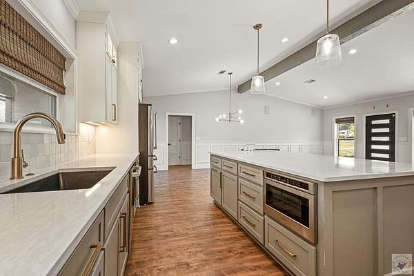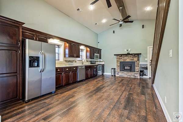 Completely remodeled by Eppinette Construction, this stunning modern home sits on 4.14 acres in Winthrop, AR and offers 2,809 sq ft of thoughtfully designed living space. Featuring 3 bedrooms and 2 full baths, the open-concept floor plan is ideal for both everyday living and entertaining, with a spacious living area highlighted by a gas log fireplace. The kitchen showcases a large quartz island, GE Caf appliances, breakfast/bar seating, and space for formal dining. The split layout provides privacy for the main en-suite, which includes a spa-like bathroom with a soaking tub, oversized walk-in shower, and a generous walk-in closet with a built-in secure room that can serve as a storm shelter or safe. Luxury plank flooring flows throughout the home with ceramic tile in both bathrooms. An oversized garage leads into a well-designed mudroom with ample storage. Enjoy a built-in stereo system that extends throughout the home, garage, and covered back patio, along with the added peace of mind of a whole-home Generac generator. The property also features an impressive 2,000 sq ft shop with an apartment, offering incredible versatility. The shop includes three large roll-up doors, covered parking in both the front and back, and washer/dryer hookup. The apartment features a full electric kitchen, dining area, wood-burning fireplace, full bath, and one bedroom upstairs. With its own private drive, the apartment is perfect for guests, rental income, or Airbnb potential. This one-of-a-kind property offers space, functionality, and modern comfort all in one.
