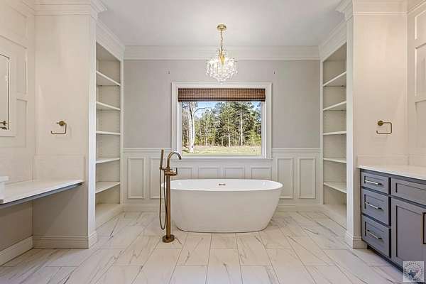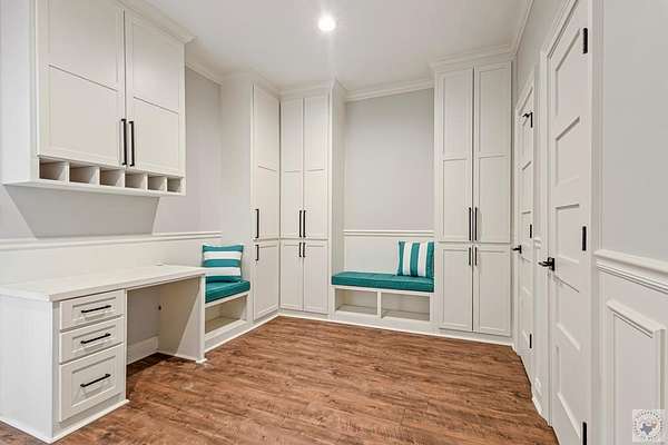 - Attic Stairs, Ceiling Fan(s), Sheet Rock Walls, Wallpaper
