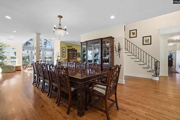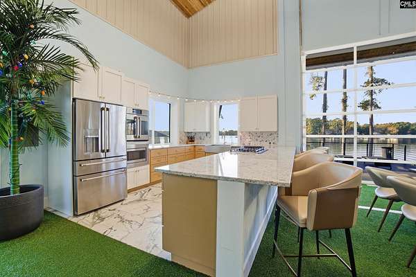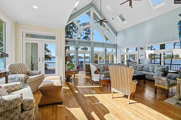 Experience unmatched lakefront luxury on 3.37 private acres with sweeping Lake Murray views. This remarkable 13,771 sq ft estate includes a grand main residence and a fully detached barndominium, with 9 bedrooms, 11 full baths, 2 half baths, and 3 full luxury kitchens--perfect for multigenerational living or hosting on a resort scale. The 9,931 sq ft main home delivers extraordinary comfort with four fireplaces, an elevator, sauna, exercise room, multiple laundry rooms, and expansive indoor-outdoor spaces. The third floor has three bedrooms, three full baths, a private den, and its own laundry room. The main level features two impressive primary suites, each designed as a fully private retreat with dual full bathrooms, dual walk-in closets, individual laundry rooms, and dedicated offices. This level also includes formal and informal dining, two living rooms, and the newly renovated chef's kitchen showcasing 3 dishwashers, 4 sinks, a baking room, 2 refrigerators, 2 ice makers, and 3 beverage/wine coolers. The lower level provides two additional guest suites, a billiards room, sauna, elevator access, and a full summer kitchen with its own washer and dryer--ideal for effortless lakeside entertaining. The 3,840 sq ft detached barndominium adds two more bedrooms, two full baths, a half bath, and a full luxury kitchen, ensuring exceptional privacy and flexibility for guests or extended family. Resort-style amenities include a lakeside pool, hot tub, boathouse, workshop, and over 4,000 sq ft of covered porches oriented toward panoramic water views. Five garages and an EV charging station with abundant storage and modern convenience. This rare Lake Murray compound blends luxury, privacy, and versatility into an extraordinary waterfront retreat in the heart of South Carolina. Disclaimer: CMLS has not reviewed and, therefore, does not endorse vendors who may appear in listings.
