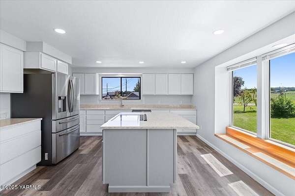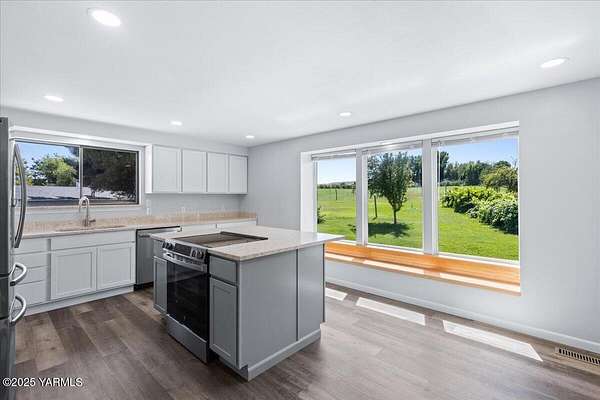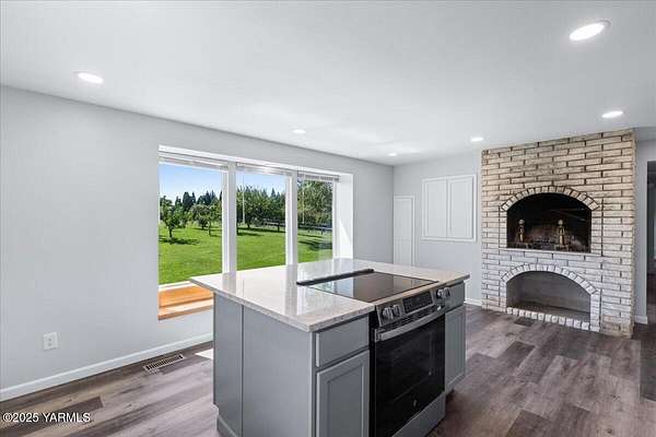 Beautifully Remodeled Home on 5+ Acres in Selah!This stunning property offers the perfect blend of comfort, charm, and functionality. Recently remodeled throughout, the home features spacious bedrooms and a large, open kitchen with quartz countertops, built-in microwave, double oven and traditional range--ideal for holiday meals and family gatherings. A vintage brick fireplace in the kitchen adds warmth and timeless character.Enjoy abundant natural light and valley views through large windows. Step outside to over five acres of fully usable land, complete with pressurized irrigation (no pump needed) for both the yard and field. Ideal areas for livestock, pets, or kids to run and play. You'll love the beautifully fenced pond, with fish, turtles, and wildlife, creating a peaceful retreat right in your backyard. The property also includes a 28' x 42' shop with wood heat and two garage doors with openers, an approximate 24' x 24' barn, and ample storage and parking for all your toys, equipment, and vehicles.Additional updates include a new pressure tank, water heater, and all new kitchen appliances. For those with a green thumb, enjoy multiple varieties of fruit trees and grapevines on the property.The fields are currently configured as one large space but are fenced to easily convert into two. This home is animal-ready and perfect for country living with modern convenience.This is truly a must-see property--schedule your showing today before it's gone!