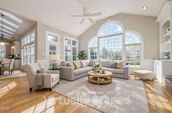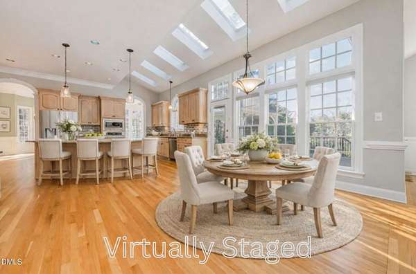 NEW PRICING | EXCEPTIONAL WATERFRONT OPPORTUNITY in SWANS MILL OF NORTH RALEIGH. This refined market adjustment creates an even stronger value proposition for buyers seeking a true waterfront lifestyle in North Raleigh. The home reflects extensive, high-quality improvements already completed, allowing future owners to focus primarily on personalization. 1.85-acre retreat offers 5325 sq. ft. of beautifully designed space, 5 bedrooms, 5.5 Bathrooms with an oversized 3 car garage! Blending timeless craftsmanship with thoughtful updates, this custom-built home delivers both luxury and peace of mind. Major upgrades include a new roof in 2019, Sealed crawlspace with dehumidifier, extensive landscaping with new french drainage, updated plumbing, whole house Water filtration system, Reverse Osmosis, irrigation system, 2 HVAC systems replaced 2023-2024, new LIFTMASTER garage door systems, GENERAC generator, GLADIATOR garage shelving, epoxy flooring, CALIFORNIA CLOSET, Extensive Custom Trim and molding, Stained Glass Transom details, updated BALDWIN hinges and doors, new Carpet, fresh paint throughout highlight some of the the home's attention to detail and meticulous care. The heart of the home features the vaulted kitchen with sky lights, huge granite island, double ovens, custom cabinetry, backsplash, under cabinet lighting and 2 pantries an effortless flow for entertaining. Soaring ceilings and walls of windows in the two-story great room flood the home with natural light and frame breathtaking views of the lake. The Sunroom, Dining, living room and a private bedroom with ensuite bathroom complete the main floor. The primary suite is a true sanctuary with a large sitting area with wall of windows with view of the mature landscape, spa-inspired bathroom with large shower, jetted bath, dual vanities and custom California closet. The second floor has an additional 2 large bedrooms each with their own bathroom & walk in closets, spacious Bonus room with wet bar. The 3rd floor offers a private living space including a huge flex space, bedroom and full bathroom- offers unmatched flexibility-ideal for multigenerational living, a guest retreat, or a home-based business. Outdoor living is elevated with a covered Brazilian hardwood deck, cozy Flagstone firepit area, lush landscaping all set against the backdrop of serene lakefront scenery. Conveniently located just minutes from North Hills shopping, dining, and parks, this property offers an unparalleled combination of privacy, luxury, and accessibility-NO CITY TAXES! PROFESSIONALLY MEASURED