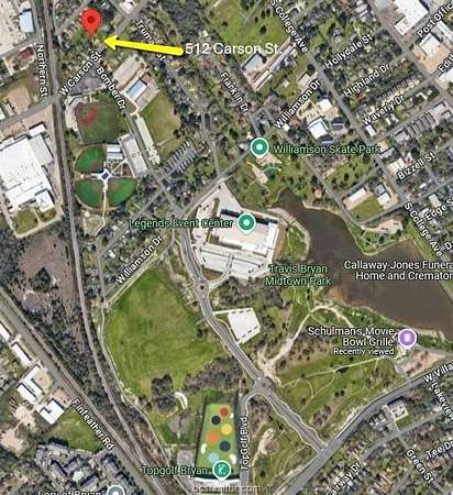 Great mixed use commercial property, may be combined with 500 Carson. Development of 4 bedroom / 4 bathroom townhouses may be allowed on this tract - contact an agent for details. This 1.06 acre lot is located at the north entrance of the $70M+ Midtown Park! This property features over 180' of road frontage on Carson and the rear property line is 350' wide. The lot is mostly open with a few trees and completely fenced around the preimeter. High-speed fiber optic internet cable recently installed on property - ready to be incorporated into your design. Across the street from Bombers Ballpark and the beautifully renovated & award winning Travis Fields. Travis Bryan Midtown Park is an emerging economic engine featuring the Legends Event Center, Topgolf, Travis fields, & Bombers Ballpark. Additional amenities include the Schulman entertainment complex (opens mid 2026), a multiplex movie theater, 24 lane bowling alley, microbrewery/restaurant, pickleball courts - all fronting on a lakefront boardwalk. Nearly weekly softball/basketball/volleyball tournaments currently drawing thousand of visitors. This has the potential for development into an outstanding mixed use commercial/residential property and may represent one of the strongest available redevelopment plays in the region!