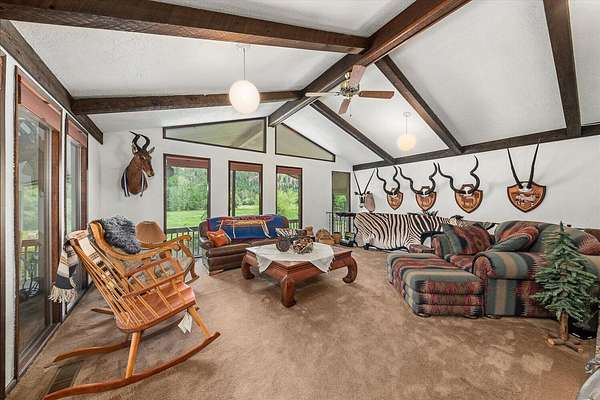 This one-of-a-kind Custom Rancher on 16+ Acres with Creek, Pond & Mountain Views is a Rare Find! Prepare to be impressed by this exceptional custom daylight walkout rancher nestled on over 16 acres of breathtaking natural beauty. Featuring stunning territorial and mountain views, this unique property boasts a serene pond, aspen trees, and Mill Creek meandering through the back--creating an idyllic and private setting. The home has over 3,300 square feet of living space, custom rock wood-burning fireplace, soaring ceilings, and a spacious main-floor primary suite. Expansive deck that overlooks the picturesque pond and mountains. Perfect for equestrian or hobby farm enthusiasts, the property includes multiple pasture areas. A 6+ car garage w/shop area. Truly a rare gem.