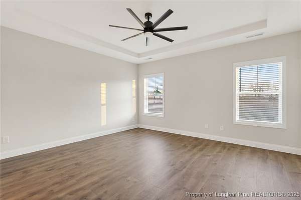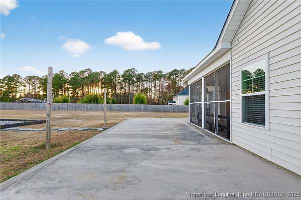 Set on 2 fully fenced acres with a separate animal or pet enclosure, this spacious 4-bedroom, 3-bath home offers 2,650 sq ft of comfortable living with room to spread out. The main level features a welcoming foyer, generous living room, kitchen with pantry, and dining area, along with a main-floor primary suite, two additional bedrooms, and baths. Enjoy easy indoor-outdoor living with a screened-in porch and large rear patio, perfect for relaxing or entertaining. Upstairs offers a private bedroom, full bath, and a large bonus/family room ideal for a media room or flexible living space. Additional highlights include a 3-car garage, laundry room, and ample storage throughout. Conveniently located between Fayetteville and Dunn with quick access to I-95, this property offers the perfect blend of space, privacy, and accessibility.