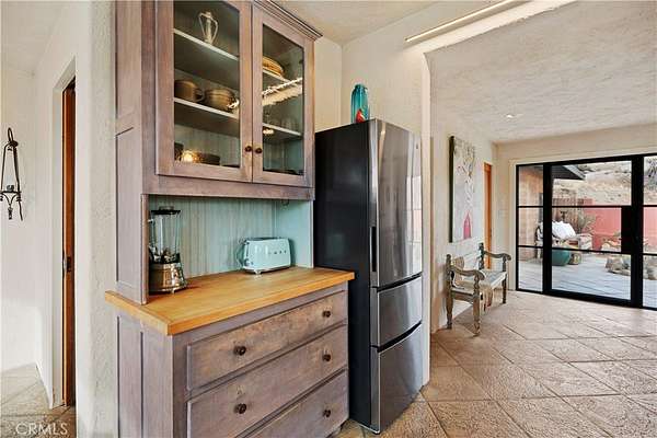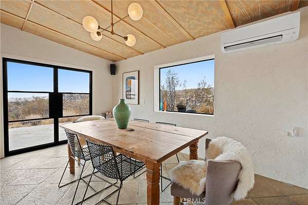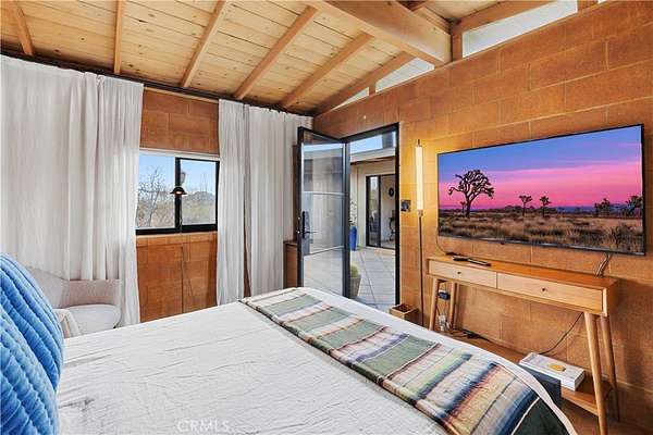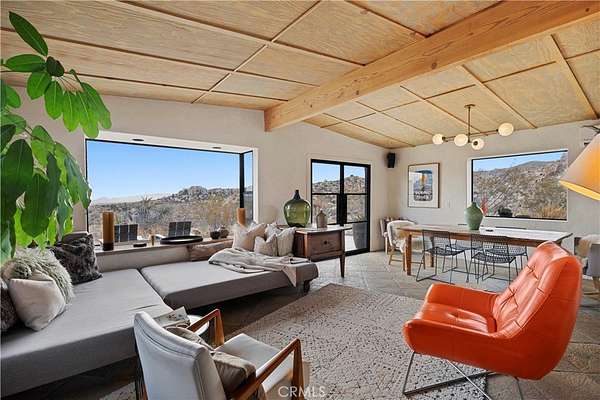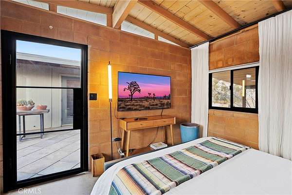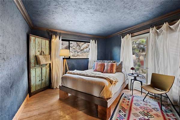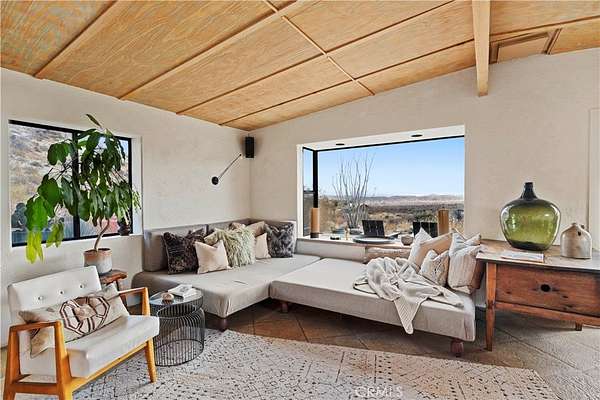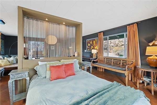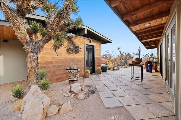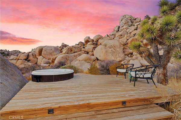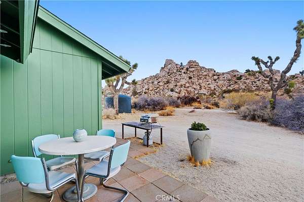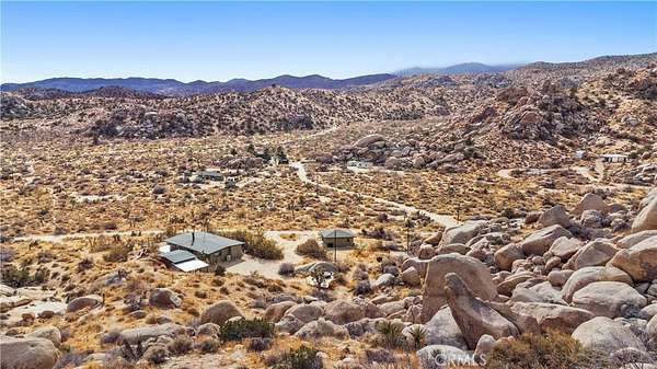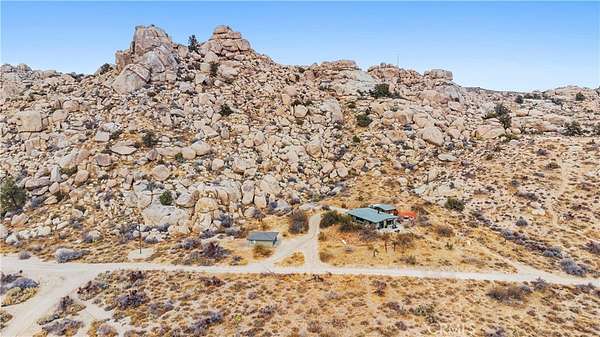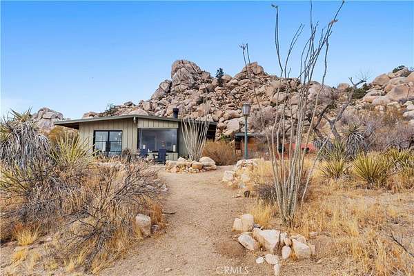RARE DESERT OASIS: 5 ACRES OF SERENITY WITH TWO HOMES AND STUNNING VIEWS Discover the unique opportunity to own your very own desert oasis, nestled on 5 acres of breathtaking land in the heart of Pioneertown's most picturesque neighborhood, Gamma Gulch. Surrounded by majestic boulders, vibrant wildflowers, and iconic Joshua Trees, this is a truly rare property. Main home is 1 Bedroom / 1 Bath, just over 1,000 sq ft with stunning mountain and desert views from every angle. Enter this freshly painted home through its custom-made iron doors from Pinky's. It boasts a cook's kitchen featuring a professional Viking range, walk-in pantry, and high-end finishes. A wood-burning stove in the cozy living room allows for warmth and ambiance. The bathroom has been recently updated with modern fixtures. Savor its private garden oasis with mature landscaping and a separate entertaining patio. A studio building just outside the side door is currently used as a second bedroom. There is also a fully finished 2-car garage for convenient storage or workshop space. Second home, approximately 700 sq feet, is situated at the opposite end of the property for privacy and seclusion and has an open concept layout with full bath and kitchenette, exterior just repainted. Main house has private well, cabin has own 2400 gallon water tank with new digital pump. Both homes have been successful short-term rentals in past--buyer to confirm current permitting and usage. With views stretching all the way to Joshua Tree National Park, the Santa Rosa Mountains above Palm Desert, and the snow-capped peaks of San Jacinto, this serene location offers unparalleled natural beauty and tranquility. A short 20-minute drive to Yucca Valley and only 15 minutes to iconic Pappy & Harriet's. Secluded yet accessible, just 7-8 minutes down a well-maintained dirt road. With its two fully remodeled homes, expansive land, and unmatched privacy, this is a rare gem that will not last long. Furnishings negotiable with exceptions. Additional 4.6 acre parcel available for separate purchase.