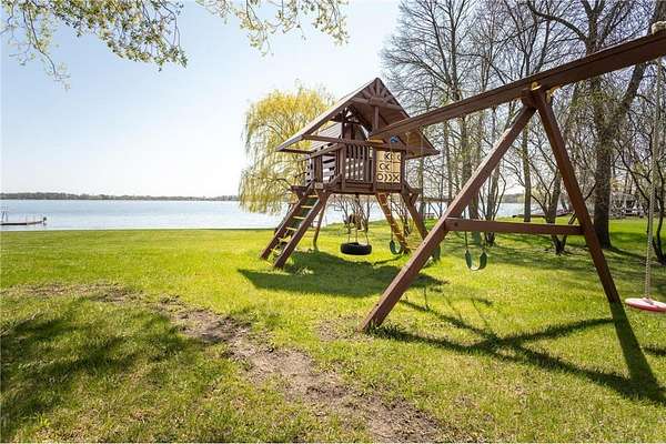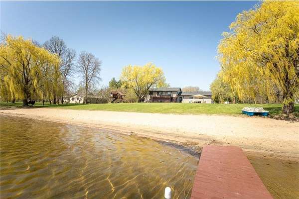 Best of both worlds! Gorgeous home located on pristine flat and level lake shore and 22 acres of excellent hunting land across the street!