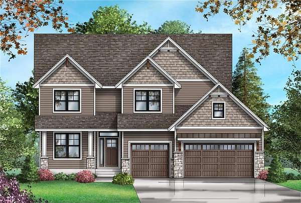 As an example this building site can accommodate a two story or rambler home plan with a three car garage. Our modern farmhouse open concept 2-story design offers comfortable family living with all the desired amenities and with a finished walk-out lower level provides 3,181 SF of quality, design and function. The modern farmhouse plan on this lot, has a base price of $749K. Ask builder for more details,
