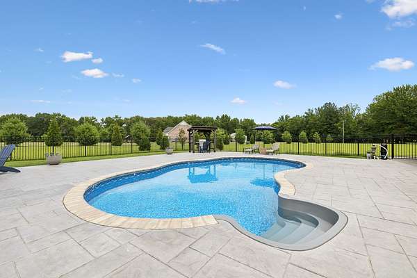 MOTIVATED SELLERS HAVE ADJUSTED THE PRICE on this home that provides a blend of tranquility & luxury. This 2-story brick home set on over 3 acres invites you to breathe deeply the moment you arrive. Step through the grand iron lined front door into a bright foyer with high ceilings that lift your gaze. Each space is composed with intention, leading to the heart of the home an unparalleled open concept center. It is the perfect space for everything from warm family gatherings to an entertainer's dream with laughter and shared toasts! Start the morning with an espresso from the coffee bar adjacent to the kitchen. The kitchen features a double oven, gas cooktop, stainless steel appliances with included refrigerator, a spacious island with a ceramic farmhouse sink. The primary main floor suite features a large walk-in dressing room style closet, double vanities, and an oversized tiled shower. The utility area which consists of the laundry, featuring a stackable washer and dryer, and a family foyer leading to the garages. Behind sliding barn doors is a serene study/home office with a coffered ceiling. An additional bedroom and full bath complete the main level living area. Upstairs offers a continuation of warmth and fun for family and friends. A large, but cozy media room is ready for gaming, music, movies, reading or other hobbies. Additionally, another vast recreation area has room enough for features such as a 9-foot pool table, ping pong table, pinball/arcade machine, or any number of other pursuits. Two more bedrooms and a full bath complete the second level living area. Outside, a symphony of serenity awaits: a covered porch overlooks a spa-like pool glistening under Tennessee skies, a hot tub with privacy fencing beckons and a firepit casts flickering shadows as stars rise above. The carriage garage provides storage for a boat, camper, etc. Country living w/ city conveniences minutes away.