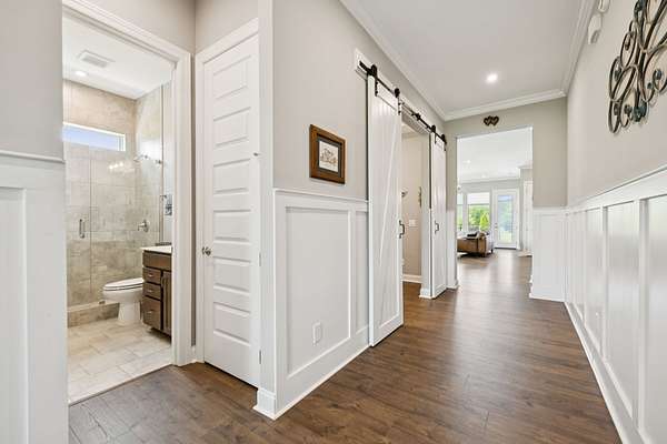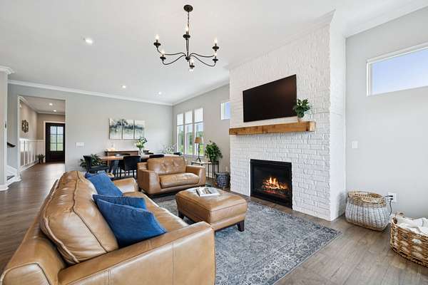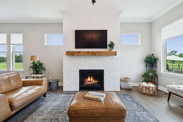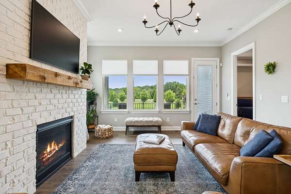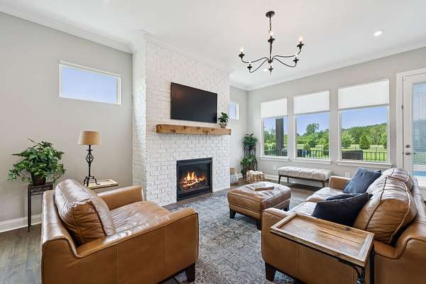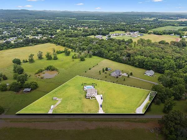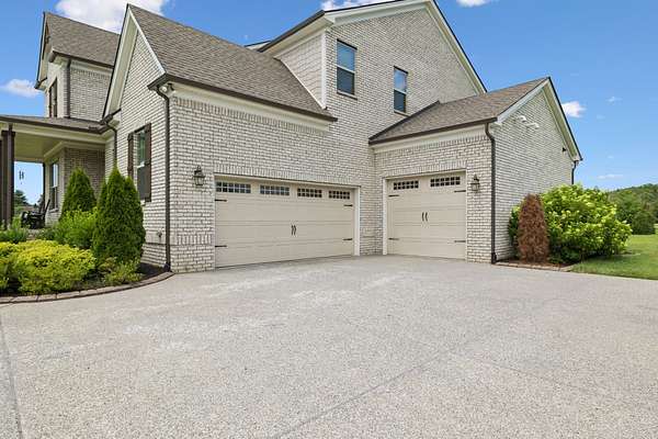 This 2-story brick home set on over 3 acres invites you to breathe deeply the moment you arrive. Step through the grand Iron Lion front door into a bright foyer with high ceilings that lift your gaze. Each space is composed with intention, leading to the heart of the home an unparalleled open concept center. It is the perfect space for everything from warm family gatherings to an entertainer's dream with laughter and shared toasts! Start the morning with an espresso from the coffee bar adjacent to the kitchen. The kitchen features a double oven, gas cooktop, stainless steel appliances with included refrigerator, a spacious island with a ceramic farmhouse sink. The primary main floor suite features a large walk-in dressing room style closet, double vanities, and an oversized tiled shower. The utility area which consists of the laundry, featuring a stackable washer and dryer, and a family foyer leading to the garages. Behind sliding barn doors is a serene study/home office with a coffered ceiling. An additional bedroom and full bath complete the main level living area. Upstairs offers a continuation of warmth and fun for family and friends. A large, but cozy media room is ready for gaming, music, movies, reading or other hobbies. Additionally, another vast recreation area has room enough for features such as a 9-foot pool table, ping pong table, pinball/arcade machine, or any number of other pursuits. Two more bedrooms and a full bath complete the second level living area. Outside, a symphony of serenity awaits: a covered porch overlooks a spa-like pool glistening under Tennessee skies, a hot tub with privacy fencing beckons and a firepit casts flickering shadows as stars rise above. The carriage garage provides storage for a boat, camper, etc. Country living w/ city conveniences minutes away.
