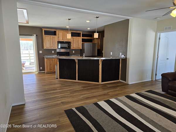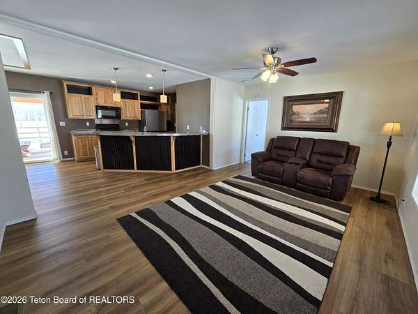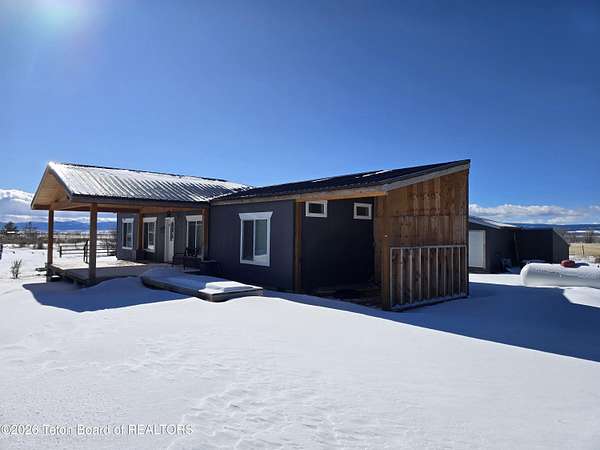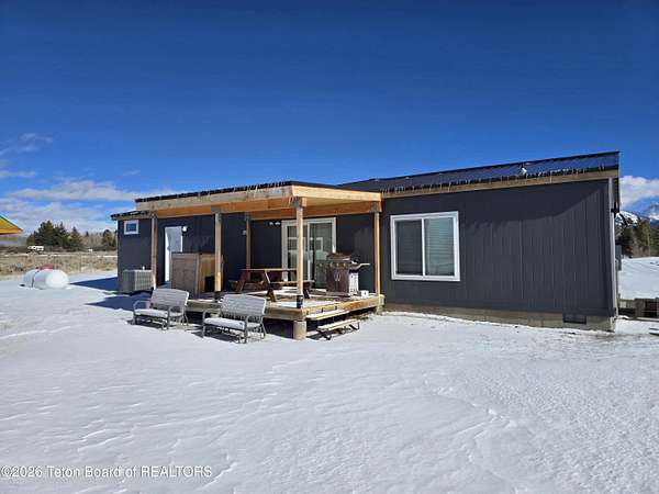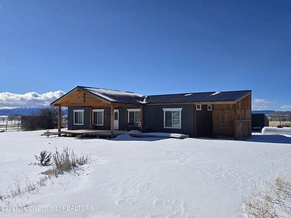 Set beneath the iconic Teton Mountains where dramatic vistas and wide-open spaces inspire, this thoughtfully designed home on 1.82 acres combines peaceful country living with outdoor versatility. Upgrades include new flooring, refrigerator, washer and dryer, water heater, recently added A/C, and a new covered back deck - perfect for relaxing and taking in the mountain scenery. An insulated and heated 900 sqft shop/garage offers space for storage, toys and lean-to capacity on the sides. Newer fencing and a loafing shed add to the horse-friendly acreage with very few CC&R's. Located near Stateline Rd, this home offers access to world-class recreation with Grand Targhee Resort just over 12 miles away. At the end of each day, enjoy dramatic sunsets over the Big Hole Mountains to the west.