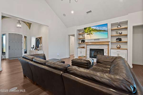 - Built-In Features, Cathedral Ceiling(s), Ceiling Fan(s), Double Vanity, High Ceilings, High Speed Internet, Kitchen Island, Natural Woodwork, Open Floorplan, Pantry, Quartz Counters, Recessed Lighting, Safe Room, Sauna, Soaking Tub, Walk-In Closet(s), Wired For Data, Wired For Sound