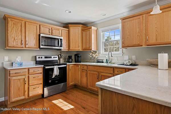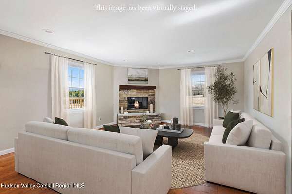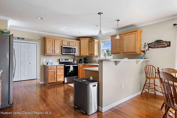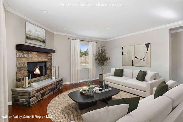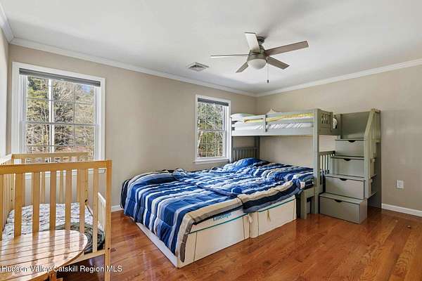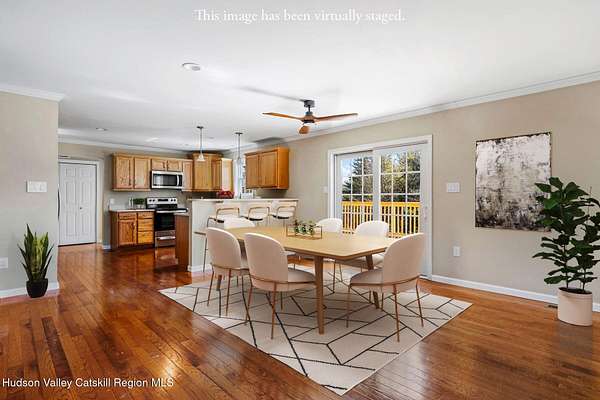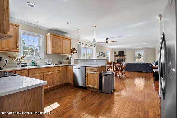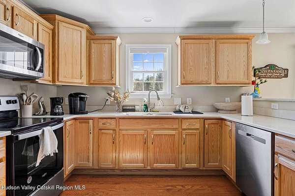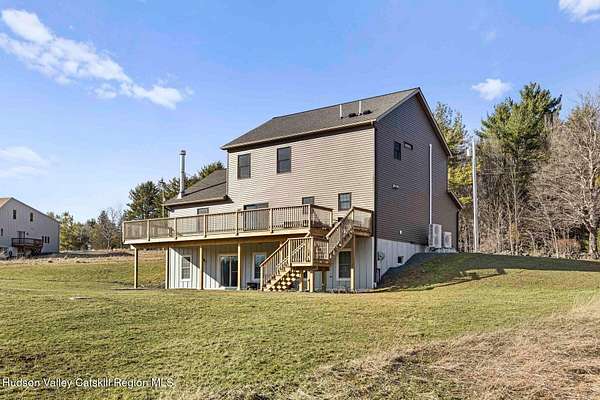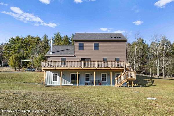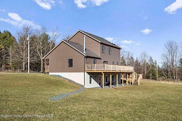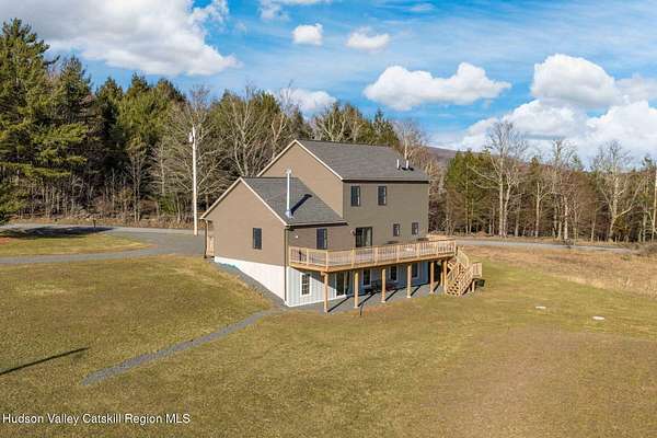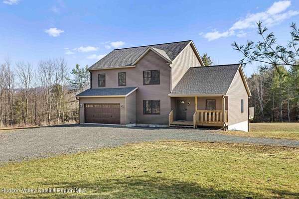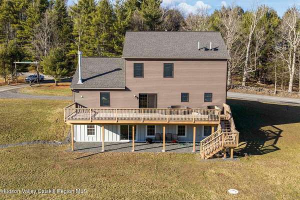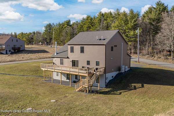 With deeded lake rights to the highly sought-after Conifer Lake community, this three-year-new home delivers the rare opportunity to enjoy like-new construction paired with coveted lake rights--without the wait or stresses of building. Thoughtfully designed with an open-concept layout, the main living space flows effortlessly between the living room, dining area, and kitchen, creating the perfect setting for both everyday living and entertaining. Rich wood floors run throughout the main level, while the living room is anchored by a cozy fireplace that adds warmth and character. The kitchen is outfitted with a full suite of stainless-steel appliances and opens directly to an expansive deck through sliding glass doors--ideal for outdoor dining, morning coffee, or simply taking in the peaceful backyard setting. Natural light pours into every corner of the home, enhancing its bright and welcoming feel. The layout offers flexibility with one bedroom on the first floor, while the second level features three additional bedrooms, including a spacious primary suite with its own private bath. The finished walkout lower level adds even more living space, complete with a full bathroom--perfect for a media room, game room, or hosting guests. Additional highlights include a covered front porch, central air conditioning, an attached one-car garage, and the ease of low-maintenance, newer construction. New owners have the option of being a part of the Conifer Lake HOA or not being part of. Opting into the community lends you to the lake rights, not opting in allows you to STR. Located equidistant to both Windham and Hunter, this home places you in the heart of the Catskills' premier four-season destinations. Spend your winters on the slopes and your summers enjoying rare access to Conifer Lake--where you can swim, fish, kayak, or simply relax by the crystal-clear water. Membership to the Conifer Lake community is optional, offering flexibility to suit your lifestyle. This is the kind of property that checks every box--modern, move-in ready, and perfectly positioned to enjoy everything the Catskills has to offer.