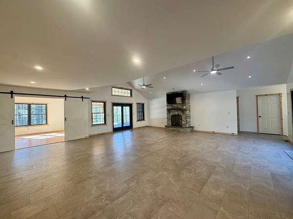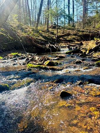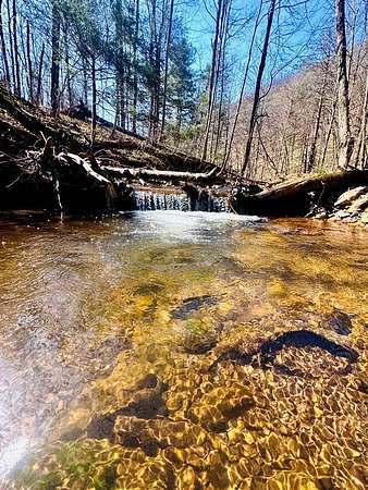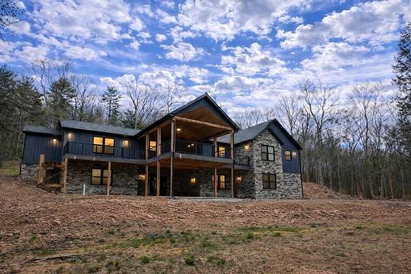 This modern concept lodge offers a one-of-a-kind living experience, built with wood harvested from its 10.79 private acres. Featuring 3 bedrooms, 2.5 bathrooms, and a 3-car garage with automatic doors, it blends rustic charm with modern comfort and open-concept living. Ideal as a full-time residence, vacation retreat, or investment opportunity. Enjoy a serene stream with native trout and a peaceful pond right on the property. Relax on the expansive back patio or covered front deck, perfect for taking in the surrounding wildlife and scenic views. Real stone finishes add warmth throughout, and the master suite includes a walk-in closet and private bath. Located just minutes from Trough Creek State Park and Tatman Run Beach & Boat Launch.