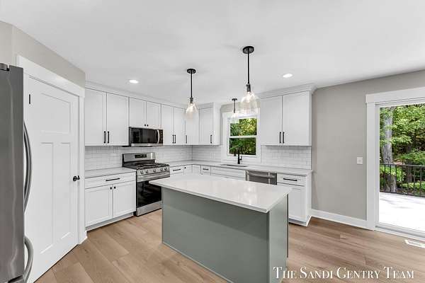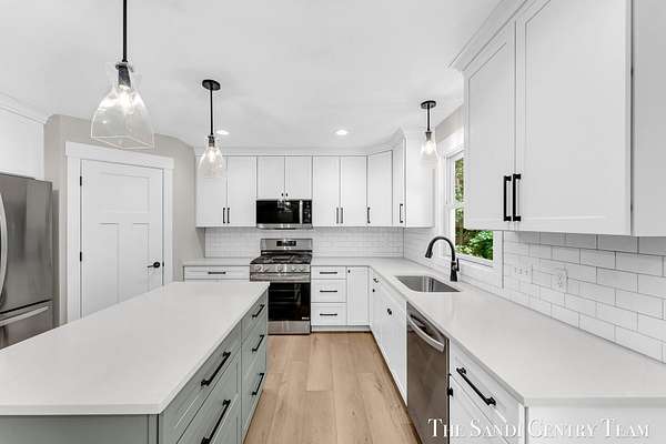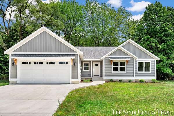 Pacillo Homes presents this beautifully completed new construction ranch offering 3 bedrooms, 2 full bathrooms, 1 half bath, and more than 1600 sq ft of quality living space on 1.5 acres in Norton Shores. The front curb appeal is immediately inviting with crisp exterior lines, warm wood accents, a covered entry, and a peaceful natural backdrop that frames the home perfectly. Inside, the open-concept main level is bright and spacious, featuring vaulted ceilings, wide-plank flooring, and a smooth flow from the living room into the dining area and kitchen. The kitchen showcases bright cabinetry, stainless steel appliances, a center island, and generous counter space. Sliding doors off the dining area open to a large deck overlooking the private, wooded backyard, creating an effortless indoor-outdoor living experience. The bedroom wing includes a serene primary suite with large windows, a beautifully finished en suite bathroom with dual sinks and a walk-in shower, and a spacious closet with built-in shelving. Two additional bedrooms and a second full bath offer flexible options for family, guests, or a home office. A convenient half bath is located just off the main living area. One of the home's standout features is the daylight lower level. Bright, open, and already framed in several areas, it is fully prepped and ready for you to design exactly the way you want. Whether you envision a 4th bedroom, home gym, recreation room, office, or additional living area, this level gives you the freedom to customize the home to fit your lifestyle and truly make it your own. Just off the driveway, the attached 2-stall garage provides convenient parking and additional storage, complementing the home's beautiful design. The location is exceptional. You are minutes from PJ Hoffmaster State Park, public Lake Michigan access, Churchill and Ross Park Elementary schools, and the Muskegon County Airport. This setting offers the perfect blend of natural beauty, privacy, and everyday convenience. This completed new construction home is ready for you to make it your own. Schedule your showing today and experience the comfort, potential, and setting that make this property truly special.