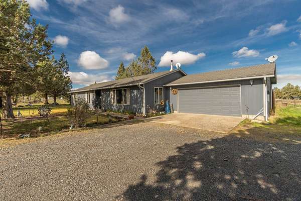Horse-Ready Equestrian Setup in Crook County! Frame-built home on 1.85 acres, ideal for rural country living. Built in 2000, this 1,780 sq ft home offers 3 beds, 2 baths, w/attached 2 car garage / RV hookup. Open floor plan w/pellet stove in living room, kitchen w/eating bar & pantry, plus dining area w/slider to covered back patio--great for relaxing or entertaining. Front & back decks capture the peaceful rural setting. Recent updates include new heat pump in 2024 & exterior paint in 2025. Property features a good-producing private well w/pump house. Ready for your livestock, 2-stall barn, tack room, hay storage area, fenced corrals, two storage sheds & small garden area. Located near Prineville Reservoir with easy access to ample outdoor recreation.
