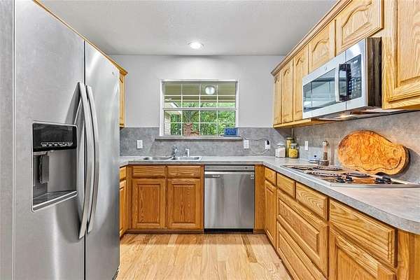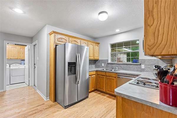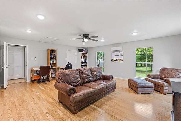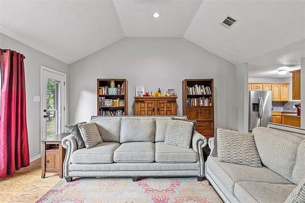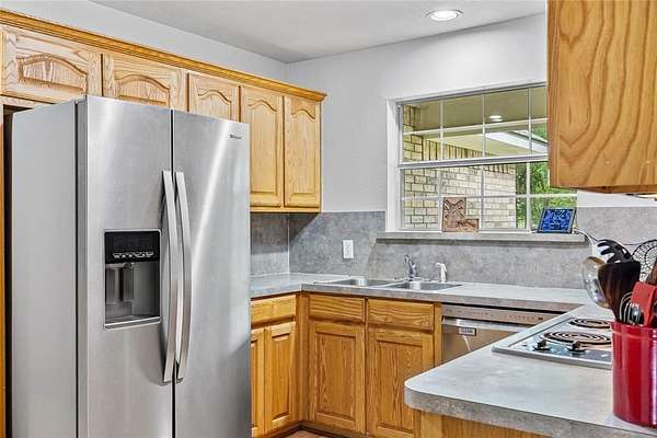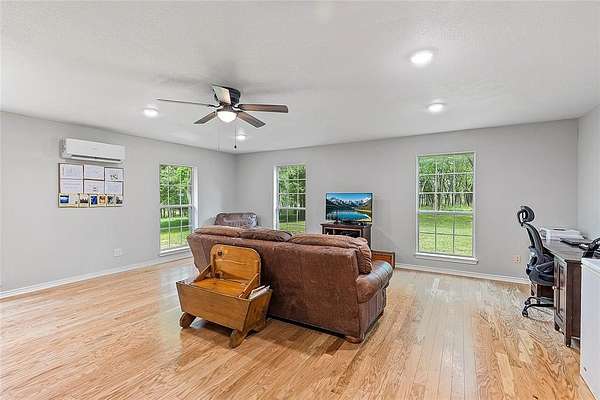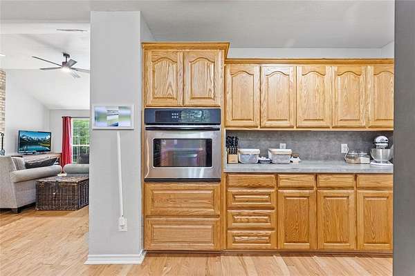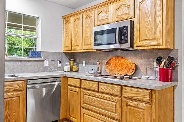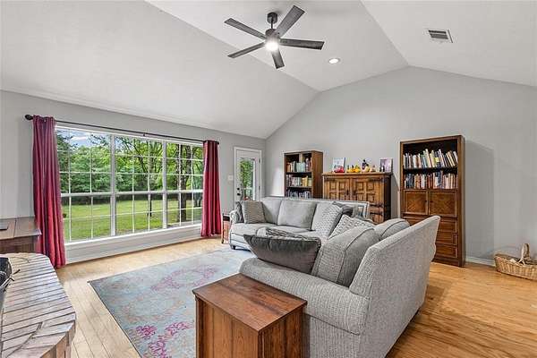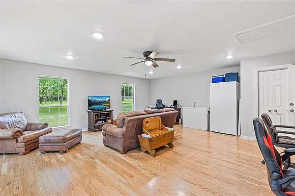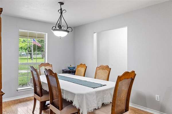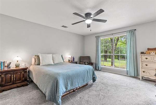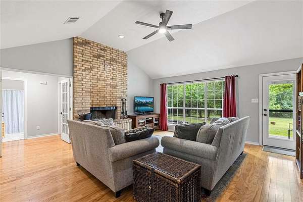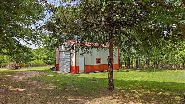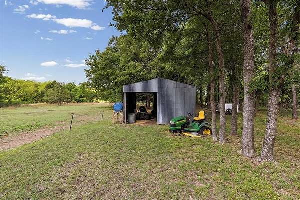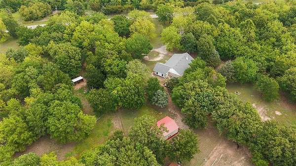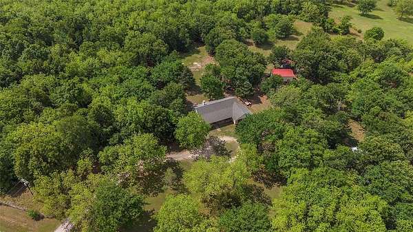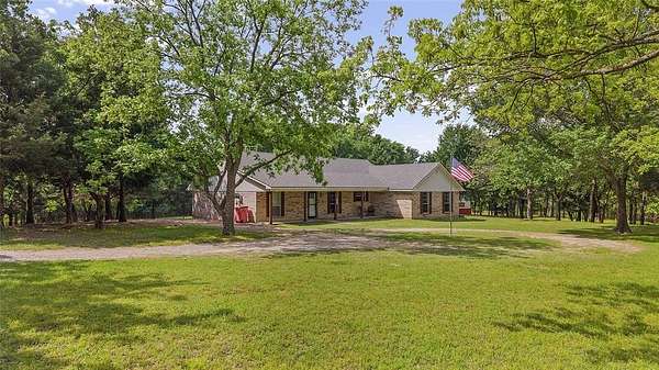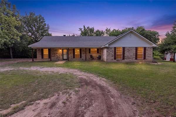 Set on 12.3 acres of gently rolling terrain, this beautiful country property offers a peaceful retreat surrounded by mature oak trees, abundant wildlife, and wide-open skies. From the moment you arrive, the pipe fencing and gated entrance create a welcoming first impression with charm, privacy, and security. Recently updated with major improvements completed within the last 4 years or less—including a new roof, septic pump, flooring, dishwasher, exterior doors, fresh paint, water heater, and microwave—this home blends modern updates with timeless country appeal. Inside, you’ll find an inviting open floor plan designed for comfortable living and easy entertaining. The spacious living room is anchored by a classic wood-burning brick fireplace, perfect for cozy evenings with family and friends. The split-bedroom layout offers privacy and functionality, while the oversized den provides flexibility as a home office, second living area, or relaxing retreat. The kitchen features stainless steel appliances, including a dishwasher, microwave, cooktop, and oven, making meal prep both convenient and enjoyable. Step outside and experience all that country living has to offer. The acreage is fenced and cross-fenced, ideal for livestock, horses, or easy land maintenance. A 20x30 shop with an overhead door offers excellent storage or workspace, and an additional building with a lean-to is perfect for hay, equipment, or lawn tools. The backyard includes a fun treehouse for kids, creating a special place for play and memories.