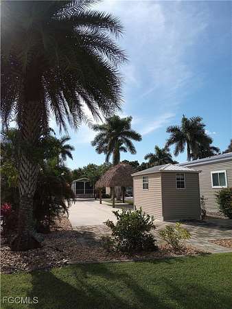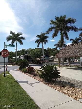 Massive price reduction on a spring clearance lot of $19,000 on 3/12/2026 Lot 165 is a beautiful corner lot making it easier to back in. The lot is conveniently located near the clubhouse where all the amazing activities happen, the pool, the pickleball and tennis courts. This lot has an 8x15 shed on it that is ready for you to make the inside your own design. Included on the lot is a rough in for sewer and water to add to your shed. Something amazing on the lot is a Tiki Hut that is 10x20' in size that will allow you the comforts of an outside living space as well as a cooler area if the sun gets warm. The pad is all concrete and has ample landscaping which includes a Sylvester Palm, ARECA Palm, SAGO Palm, miniature date palm, dwarf umbrella tree, and a Cole palm. This is a must see.
