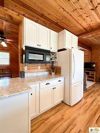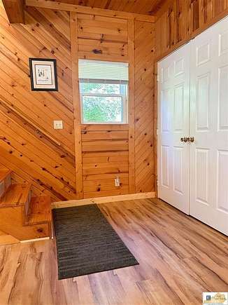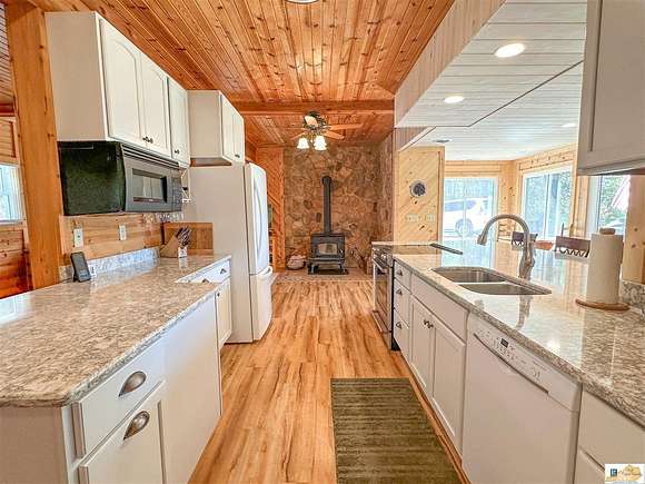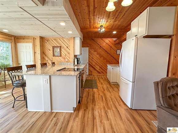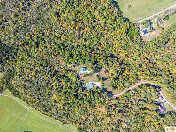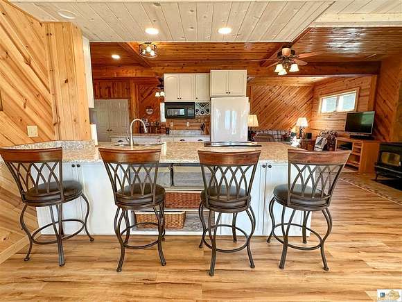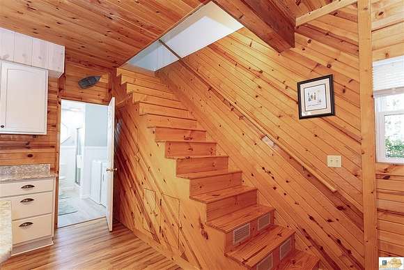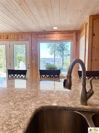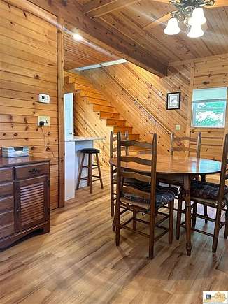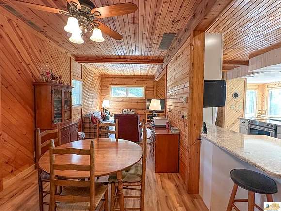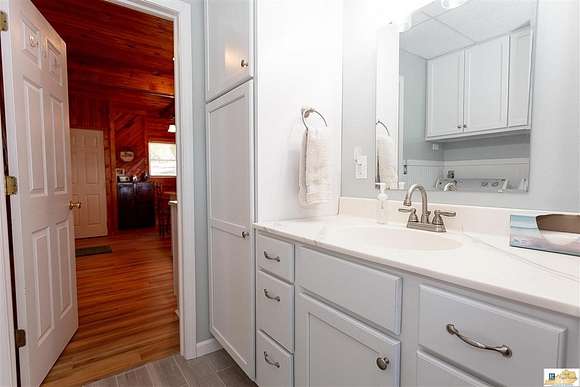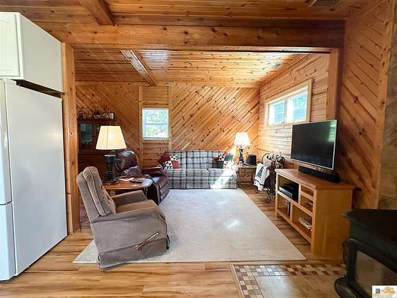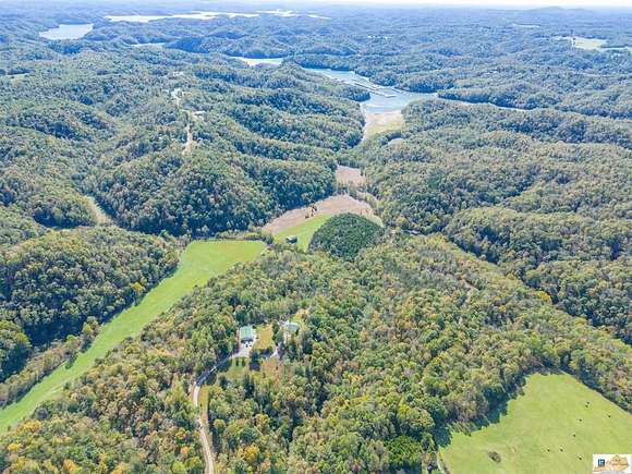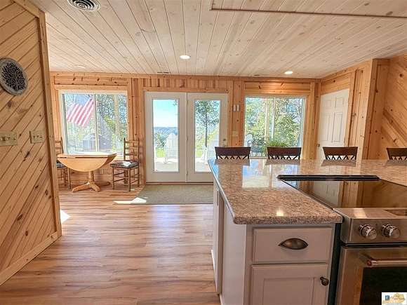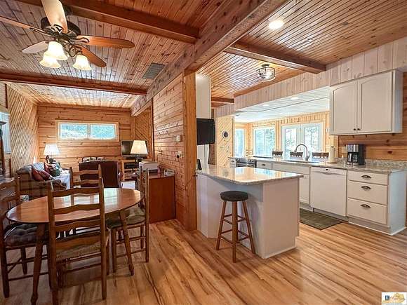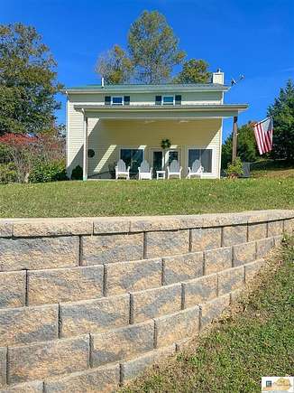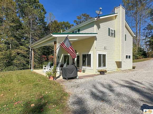 Welcome to your perfect summer retreat with stunning views of Dale Hollow Lake and Sulphur Creek Resort! Tucked away at the dead end of Dogwood Lane in Cumberland County, Kentucky, this 2-story saltbox-style home boasts cheerful yellow siding and a cozy covered front porch to enjoy those breathtaking lake views. Situated just 7.5 miles from Dale Hollow State Park, golfing, lodge amenities, and Trooper Island Dock, it's a prime location for easy access to boating and outdoor fun. Sulphur Creek Resort is just 9 miles away, and you're only 10 miles from Burkesville. This charming home features 3 bedrooms and 2 full baths, with an open-concept main floor combining the living, dining, and kitchen areas. The sunlit breakfast area offers a perfect spot to take in the lake views. The kitchen is a standout, with a large island with seating, and elegant granite countertops. The warm tongue and groove pine walls, ceiling, and a wood-burning stove create the perfect vacation home ambiance. The home has central heat and air with the wood stove as a secondary source. Sitting on 13.248 acres at the end of a dead end road, this property gives you plenty of privacy and room to grow. Underground electric and a distribution box are already in place for future development. A 40x60 garage is a fantastic bonus, offering 200-amp service, an 800 sq ft workshop, and 1,600 sq ft of dry storage with a kitchen and two overhead doors. The insulated workshop has a half bath and year-round heating and cooling with an electric furnace, wood stove and window air unit. The garage has its own water meter, electric meter, and septic system, separate from the house. With a garden area, fire pit, beautiful landscaping and woods to explore and hunt, this retreat is perfect for seasonal getaways or full-time living. A true gem with so much to offer!