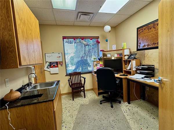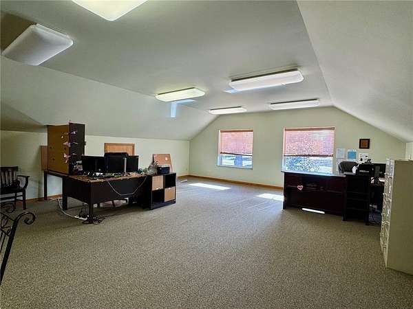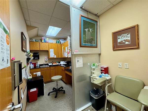 Nearly 7200 square feet of space in this 2 level medical clinic. Space could be divided into two separate clinics. Two waiting rooms and 2 reception areas. Each side has office spaces, nurses station, and multiple nurse's offices/exam rooms. Two large spaces upstairs with a conference room and workspace/breakroom with kitchenette and a full bathroom and laundry. Large covered patios off of each level. Building sits on 2 parcels with plenty of space for expansion on a beautiful tree covered lot. Razorback Greenway and downtown Springdale are within a short walk.