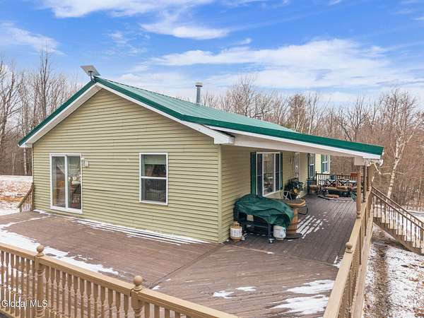 Experience the perfect blend of comfort and refined country living with this 3-bedroom, 2-bath home set on 6 acres with breathtaking Catskill Mountain views stretching for miles. Just a short walk from Stone Store & Dutton Ridge State Forest, enjoy nearly 2,000 acres of hiking, exploring, and outdoor recreation right at your doorstep. Inside, the sun-drenched country kitchen boasts a peninsula island with breakfast bar, an inviting dining area, and flows seamlessly into the warm living room with a cozy fireplace. The spacious primary bedroom features a private ensuite full bath. The lower level adds even more livable space, complete with a wood stove, utility room, laundry, mudroom, and ample storage. Convenient garage access beneath the home makes everyday living effortless. Located just 15 minutes from the charming village of Middleburgh and 30 minutes from Windham, this move-in-ready home is designed for comfortable, elevated country living. Pack your bags--your search ends here!