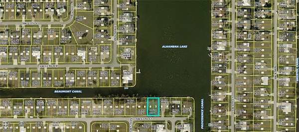 Welcome to an exceptional opportunity to build your custom dream home on the highly desirable South Shore of Lake Alhambra. This premier waterfront homesite offers breathtaking panoramic lake views and direct access to miles of navigable waterways, placing you at the heart of Cape Coral's renowned chain-of-lakes system. From your backyard, set sail through interconnected waterways that lead to Lake Kennedy, Lake Saratoga, Shamrock Lake, and numerous other lakes-perfect for boating, kayaking, fishing, and sunset cruises. Whether you're an avid boater or simply enjoy tranquil waterfront living, this location delivers the ideal balance of recreation and relaxation. Nature lovers will appreciate the daily wildlife encounters, from osprey diving for fish to playful otters and graceful turtles gliding through the water, creating a serene and picturesque setting right outside your door. Adding to the value, all assessments are fully paid, offering peace of mind and simplifying the path to construction. Ideally situated, this property provides quick access to Cape Coral's top dining, shopping, entertainment, and outdoor recreation, while still maintaining a quiet, residential feel. Opportunities like this are rare-secure your place on one of Cape Coral's most sought-after lakefront locations and start envisioning the waterfront lifestyle you've been dreaming of. Don't wait-this one won't last.