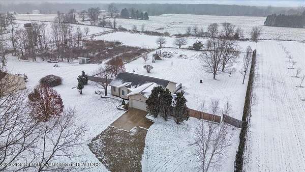 Tucked into the quiet countryside of Carmel Township, this home offers more than just space, it offers possibility. With 4 bedrooms, 3 full baths, and 1.60 acres to call your own, this home gives you room to spread out, grow in, and make your mark. The cozy living room fireplace sets the tone inside, while a front porch and back deck invite you to enjoy Michigan's seasons year-round. A 2-car attached garage, backyard shed, and partial fencing add just the right balance of function and freedom. Zoned for Charlotte Schools and minutes from town, this is country living made easy. Discover the perfect blend of rural tranquility and modern convenience at 5130 Carlisle Hwy. Situated on a 1.6-acre lot in Carmel Township with Charlotte schools, this 4-bedroom, 3-bathroom ranch offers the peace of country living with the incredible benefit of exceptionally low property taxes. A short drive finds you in Charlotte, Vermontville, Nashville, Olivet, or Unlike many homes in the area, this property is connected to natural gas, eliminating the hassle and expense of propane. Stepping inside you'll find a freshly painted interior featuring wood floors and an open layout designed for comfort. The heart of the home is the updated kitchen, boasting newer quartz countertops, a stylish backsplash, and a stainless steel apron sink. Chefs will appreciate the newer gas range and hood, while the tile flooring ensures easy maintenance. A standout feature of this floor plan is its versatility, offering two separate ensuite bedrooms. The first primary suite is conveniently located on the main level, while a second full ensuite is found in the fully finished basementideal for guests, in-laws, or a private retreat. Mechanical peace of mind is built-in with a newer tankless water heater and a newer A/C unit as well a seller-provided home warranty. Outside you will find what you came for in a country-living retreate. Relax on the maintenance-free composite deck overlooking your private oasis, complete with a "mini" orchard of 20-30 fruit trees ready for harvest.