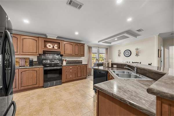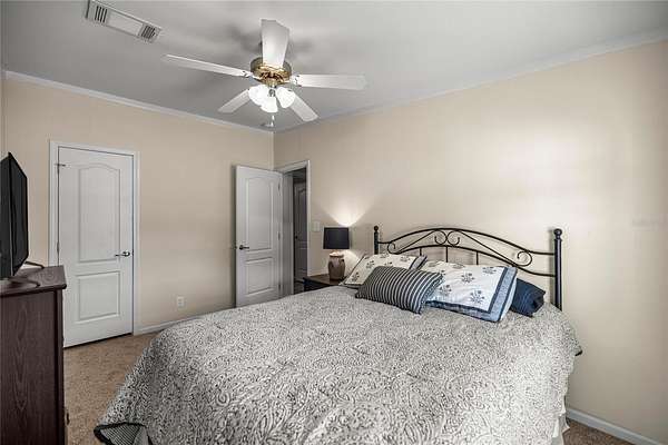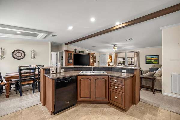 - Cathedral Ceiling(s), Ceiling Fans(s), Coffered Ceiling(s), Crown Molding, Eat-In Kitchen, Living Room/Dining Room Combo, Open Floorplan, Solid Wood Cabinets, Split Bedroom, Walk-In Closet(s), Window Treatments