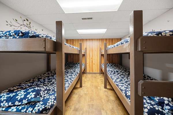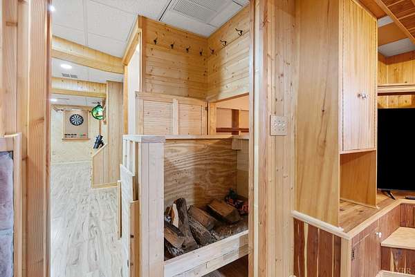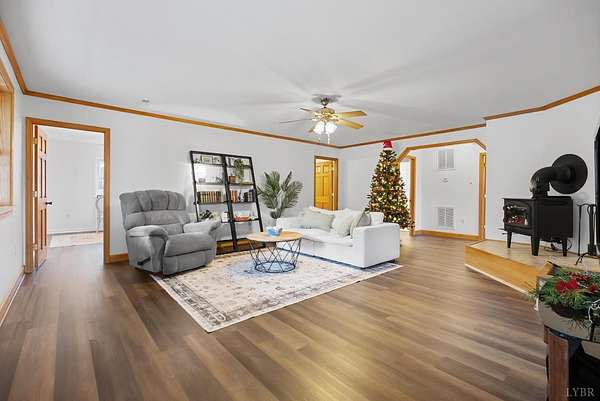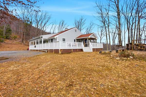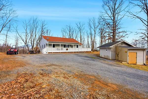 This hand-built 103 acre mountain retreat is publicly available for the first time. Bordering the George Washington National Forest, the property unfolds into sweeping panoramic views, a running stream, and unmatched privacy. The home has been meticulously maintained, featuring a 1-year-old 50-year shingle roof, fresh paint, and new luxury vinyl plank flooring. Custom craftsmanship is evident throughout, including a built-in wood cart, kitchen cabinetry, and woodstoves on each level. Four main level bedrooms offer two en-suite baths and convenient main-level laundry. The fully finished basement features a game room, built-in bar, full bath, and an 8-sleeper custom bunk room. Step onto the expansive wraparound deck or gather around the firepit to take in stunning mountain views. The insulated outbuilding with electric may be completed as an Airbnb or guest suite. This is an outdoor enthusiast's dream, designed for those seeking beauty and solitude. Schedule a showing before it's gone!