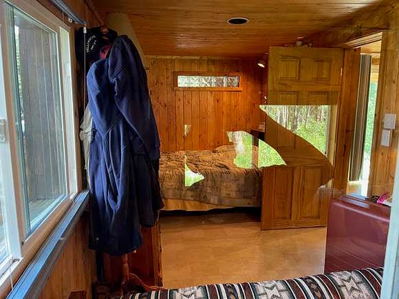 Modern cabin fully grid connected over-looking (30 yards from shore) Glacier Spring lake in Mesa Lakes Recreation Area with 5 trout-filled lakes and multiple hiking trails. Winter water supply system and access within 0.2 miles of Colorado Hwy 65. Part of Sunset Summer Home Permitted area with gated road access and minimal ($300) association fees. Cabin fully modernized in 2002 with tongue/grove pine finish. 2 private sleeping areas plus kitchen/dining and living room with sleeper sofa in addition to sleeping loft adequate for 2-3. Sleeps 6+ comfortably. Modern bathroom with tub/shower, toilet, separated vanity. Satellite internet supports work from readily accessible forest location less than 90 minutes from either Grand Junction (45 miles) or Montrose (60 miles) airports.