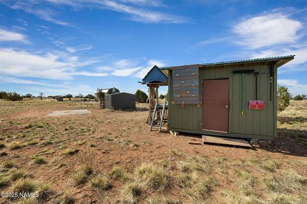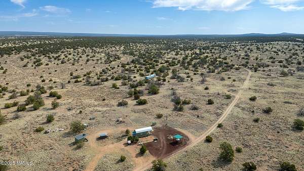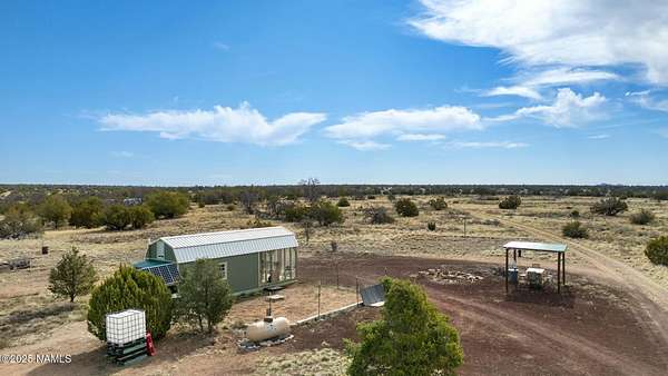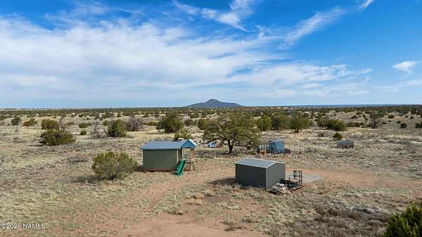 Lot B just sold; Now the best 20 are acres left Escape to your off-grid wildlife paradise, w/ so many 'Bonus Structures' (ask agent)! *Sellers have lived here full-time for the last 8 years in 32'x12' barn.* Comfy, cute, and warm, this property is immensely quiet, has friendly neighbors, and the 360 degree views of breathtaking sunsets, mesmerizing starry nights, and majestic San Francisco Peaks will put your heart & soul at ease. Also you get a bonus manufactured home!, 2 cisterns (550gal & 275gal), 2 sheds (10'x10' & 12'x12'), chicken coop, and even visits from elk & pronghorn deer. Located in desirable Woodland Ranch with NO HOA restrictions! Some solar already installed, and electricity is nearby. Approx 20 minutes to the Grand Canyon and trails everywhere. (Furniture, fridge, generator, etc. may convey with acceptable offer.) Come see it in person to realize the massive potential! These 2 lots are away from the road so you don't get so much noise or the dirt in the air! (*Can also be sold separately in 10-acre parcels: Lot A and Lot D, adjacent to each other.*)