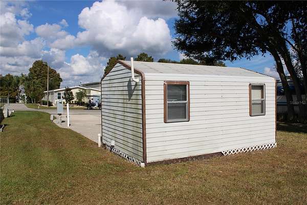 Additionally, the lot comes with a convenient storage shed that includes a washer and dryer, making your stay even more comfortable. There's ample space to add a manufactured home and an RV port, providing flexibility for your lifestyle.