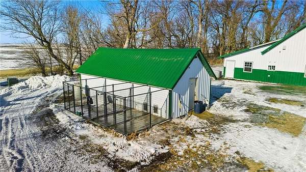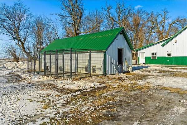 The 4.99-acre property includes perimeter fencing and pasture areas, two heated automatic livestock waterers, multiple outbuildings pre-wired for networking and future monitoring capability, and a heated dog-kennel building with indoor runs. New septic system installed in 2013.