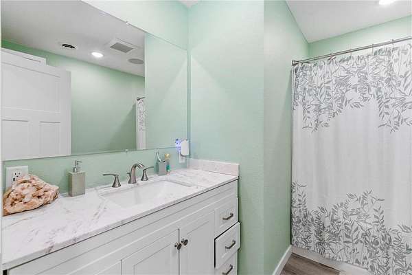 Newer home (3BR / 2.5BA) features a modern, energy-efficient design with full in-floor heat, on-demand hot water, central A/C, and hard-surface flooring throughout (carpet only in the theater). Expansive 22' x 30' great room with 16' vaulted ceiling and a spacious kitchen with seating for eight and updated cabinetry. The primary suite includes a private covered patio (24' x 10' with epoxy floor) and a tiled walk-in shower. Second-story theater updated in 2020.