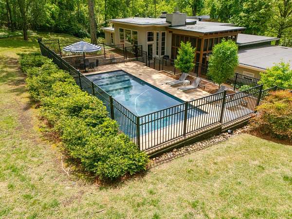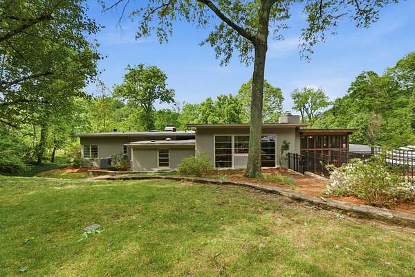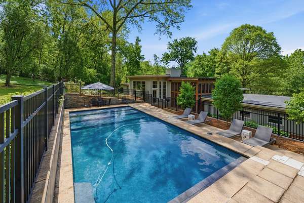 Est $12,797/moStylish mid century modern on one of Nashville’s favorite streets. Originally designed by Edwin Keeble and perfected by Ron Ferris with two additions in the early 2000’s. One level living focused with spacious primary suite and luxurious bath, including two walk in closets. Dramatic kitchen and family room with soaring 14 foot ceilings and extensive built ins and stone fireplace mantel. Plenty of space to host large gatherings The lovely screened porch leads out to a beautiful pool and lush green privacy. Just one mile south of Green Hills - the ultimate in convenience. Stucco construction, two fireplaces, deep garage with epoxy floor and simply fantastic storage.