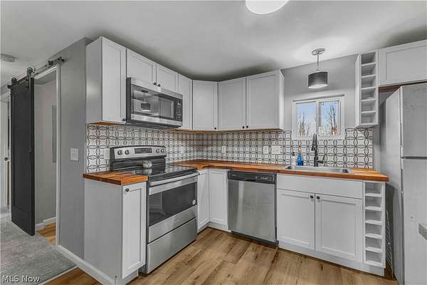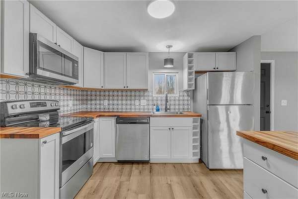 Discover the perfect blend of modern comfort and rural tranquility with this beautifully renovated ranch home, nestled on an impressive 8.23 acres. This inviting 3-bedroom, 1-bathroom residence underwent a complete transformation in 2022, with every detail thoughtfully updated-from the new roof and drywall to the subfloor and even crawlspace. The revamped electrical and plumbing systems ensure peace of mind, while the stylish flooring adds an elegant touch throughout. The heart of the home is the stunning kitchen, featuring stainless steel appliances and chic butcher block countertops, ideal for both everyday cooking and entertaining. The living room boasts a vaulted ceiling, creating an airy, spacious feel. Additional highlights include a 2-car garage and a large shed, offering ample storage and workspace. Outdoor enthusiasts will delight in the opportunity to hunt on their own land, making this property a true haven for nature lovers. Don't miss the chance to call this exceptional home your own-a rare find where modern upgrades meet the serenity of expansive, private acreage.