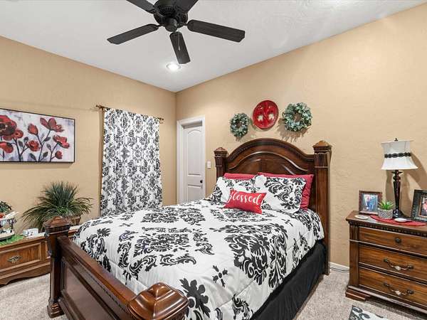 - Carpeting, Ceiling Fan, Hardwood Floors, High Ceilings, Shades/Blinds, Smoke Detectors, Tile Flooring, Whirlpool Type Tub