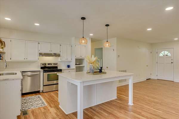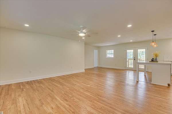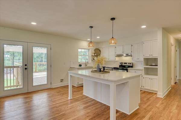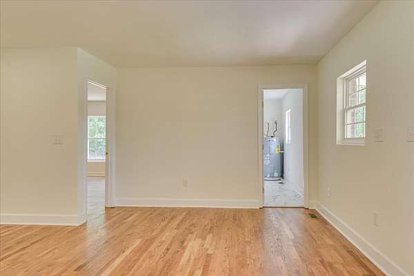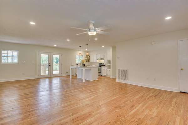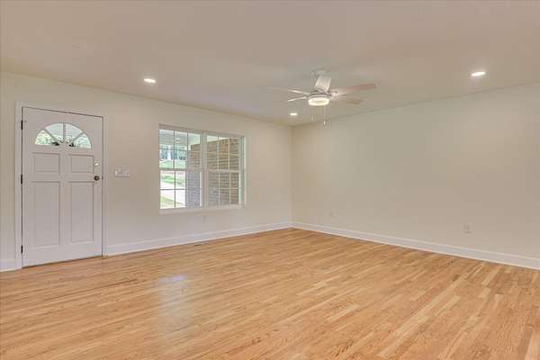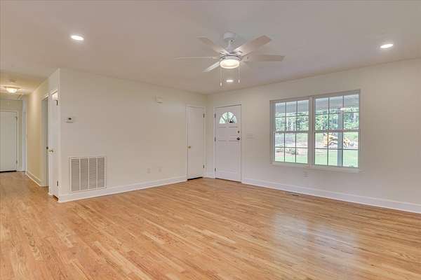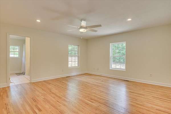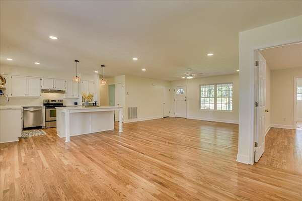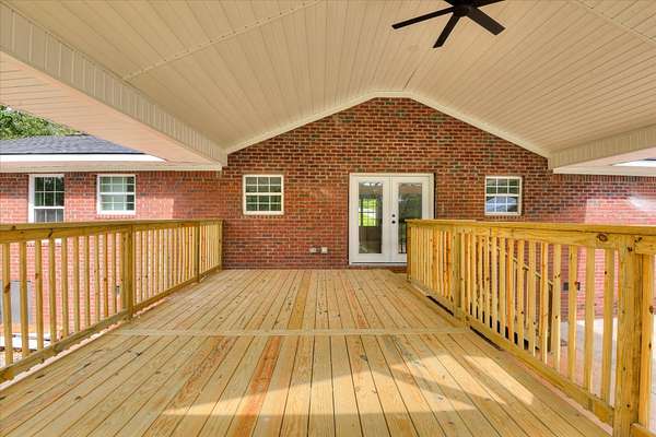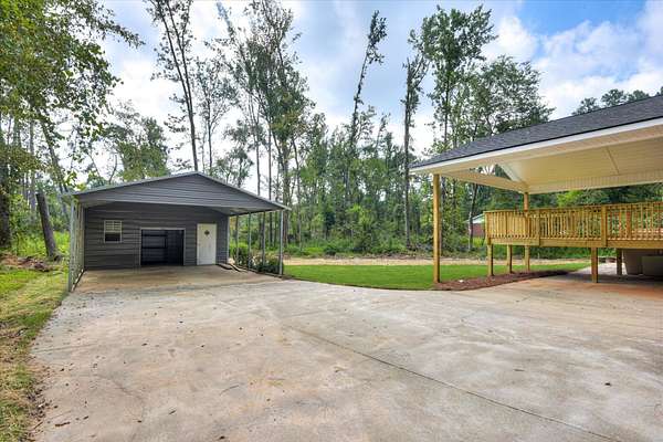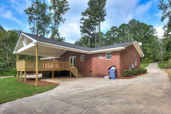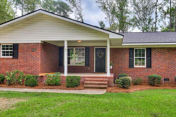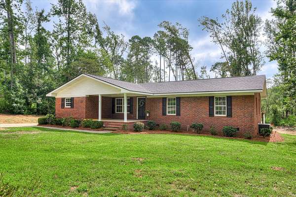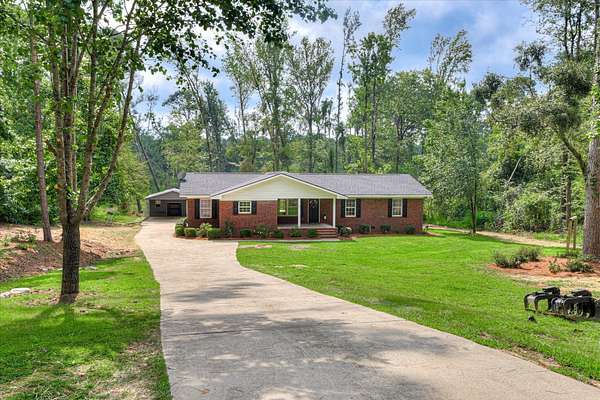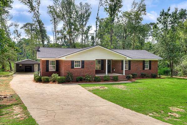 Tucked away on over 2 acres in the heart of Evans, this charming brick ranch offers the perfect blend of privacy and convenience. The inviting front porch sets the tone, welcoming you into a home filled with natural light, warmth, and thoughtful design. Inside, you'll find an open concept layout that makes entertaining and everyday living a breeze. The kitchen features plenty of cabinet space, stainless steel appliances, and a spacious pantry, all flowing seamlessly into the breakfast area and great room. Beautiful hardwood floors run throughout the home, bringing a timeless touch to each space. The owner's suite is designed for comfort, complete with a private bath that includes a soaking tub and separate shower. With a split floor plan, the additional bedrooms offer privacy for family or guests. Step outside to enjoy the expansive yard, perfect for gardening, play, or simply relaxing. A large, covered back deck provides the ideal spot for morning coffee or evening gatherings, while the paved driveway leads to an outbuilding with its own covered parking-great for projects, hobbies, or extra storage. This home is truly move-in ready, combining peaceful seclusion with easy access to all that Evans has to offer. Don't miss your chance to make it yours!