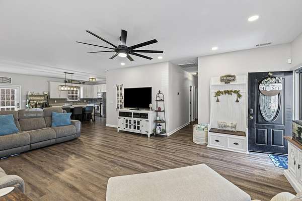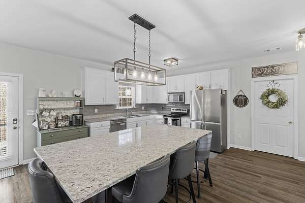 Welcome to peaceful country living in the highly sought-after Merriwether school district of Edgefield County! Nestled on almost 3 beautiful acres, this 3-bedroom, 2-bath home offers the perfect blend of space, comfort, and functionality. Step inside to a large, open-concept living area that creates an inviting space for both everyday living and entertaining. The updated kitchen is the heart of the home, featuring a spacious island with ample seating, modern finishes, and plenty of counter and cabinet space for cooking and gathering. Outside, you'll love the nearly 3-acre lot giving you room to garden, add a workshop, enjoy outdoor activities, or simply take in the peaceful surroundings. If you've been looking for space to spread out without sacrificing convenience to town, this Edgefield County gem is ready to welcome you home.