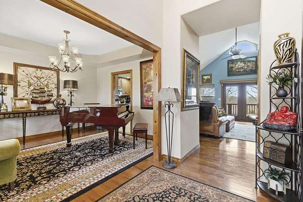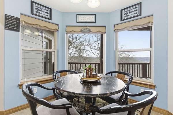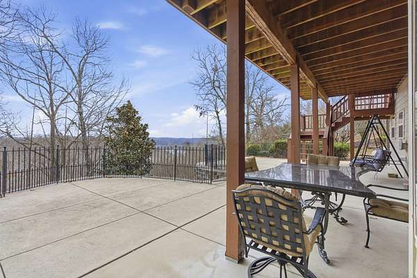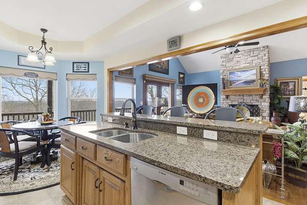 Own your own piece of paradise with this beautifully crafted lakeview home on acreage. From the moment you arrive, the meticulous care and quality construction are unmistakable. Expansive lake views sweep through the home, creating a peaceful backdrop from nearly every room.The main living area is truly captivating--soaring ceilings, abundant natural light, and a striking fireplace set the stage for both relaxed evenings and memorable gatherings. The openconcept design seamlessly connects the living room to the spacious kitchen, where an oversized island, generous cabinetry, and included appliances make cooking and hosting effortless.Wake up to sunrise views from the master suite, complete with private balcony access, a large walkin closet, and a spacious ensuite bathroom. Additional bedrooms offer versatility for family, guests, or a dedicated office.The lower level expands your living space with another large family room--ideal for a movie room, game room, or a comfortable retreat. A second full kitchen adds convenience for entertaining or multigenerational living.Step outside to a private courtyard designed for relaxation and connection--perfect for grilling, lounging, or enjoying quiet moments outdoors. For lake enthusiasts, a boat slip is just minutes away and available for additional purchase.With a touch of updating, this property offers endless potential. All of this is located just minutes from Branson's shopping, dining, and entertainment, while still providing the privacy and tranquility you desire.