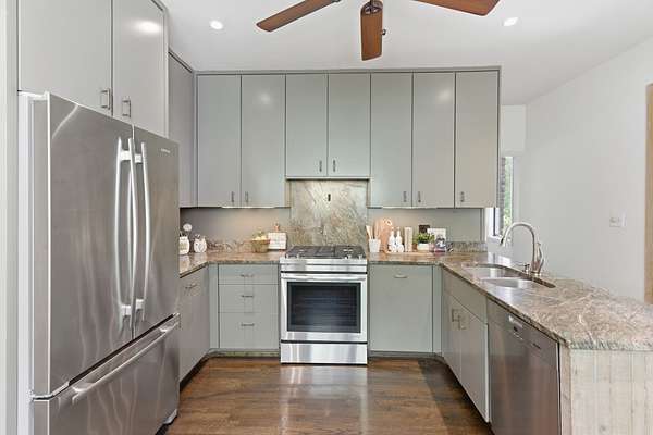 - Dishwasher, Gas Range, Refrigerator, Stainless Steel Appliance(s)