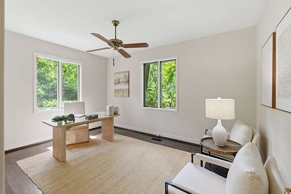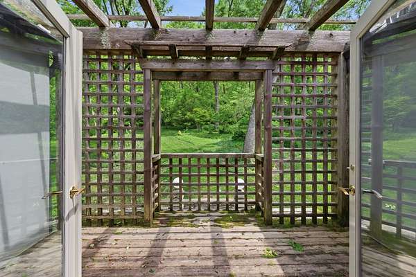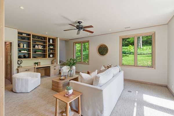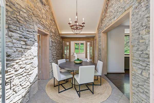 The current residence features 5 bedrooms and 4 baths with generous living spaces. Thoughtful placement on the lot allows for both privacy and picturesque surroundings, with mature trees and a natural landscape that create a peaceful, retreat-like setting.