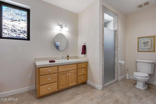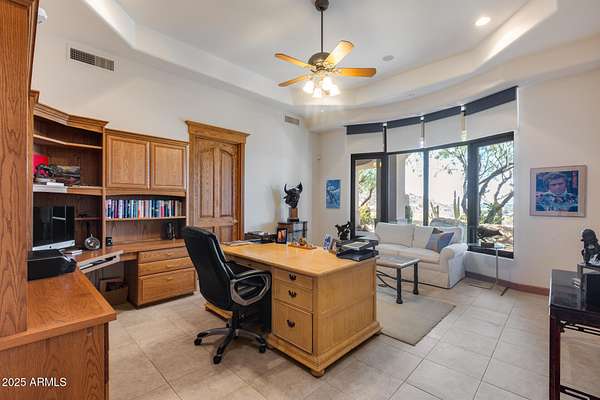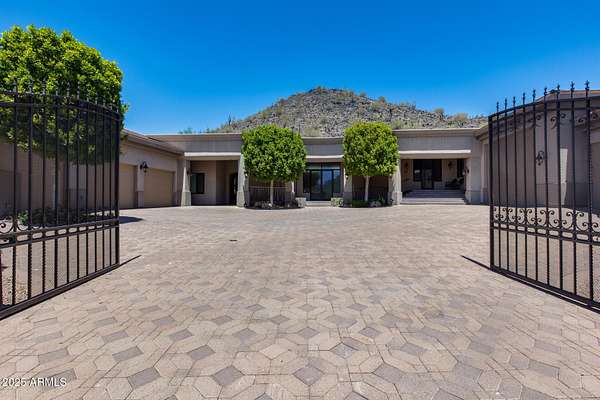 One-of-a-kind hillside estate above Arrowhead Lakes with unmatched panoramic views of the entire NW Valley. Situated on 2 private acres, this 6,500 sq ft architectural masterpiece blends luxury living with exceptional function and privacy. Designed to maximize the dramatic mountain and city light vistas, this residence has no comparisons in the NW West Valley, close to all highly desired dining and entertainment areas of PHOENIX. Step inside to soaring ceilings, custom wood finishes, and seamless indoor/outdoor flow. The gourmet chef's kitchen and butler pantry opens to expansive living and dining spaces that lead to oversized view patios perfect for entertaining. A genuine home theatre offers a true cinematic experience, while a large bonus flex space is ideal for a full gym, game room, or grand recreation lounge. The split layout includes an attached casita for guests or multigenerational living. The primary suite is a private retreat with sweeping views, spa-style bath, and enormous walk-in closet with built-ins galore. Car collectors will appreciate the massive 8-car garage with room for lifts, storage, and specialty vehicles a rare offering in this area. Outdoors, enjoy tranquility, natural desert surroundings, and endless potential to create the ultimate resort backyard. A property of this quality and setting is truly unique combining luxury, space, and dramatic scenery with proximity to shopping, freeway access, and top-rated schools. Not only is the hillside community gated but also your private estate gated. Experience the best VIEWS in the Northwest Valley. This is hillside living at its finest.