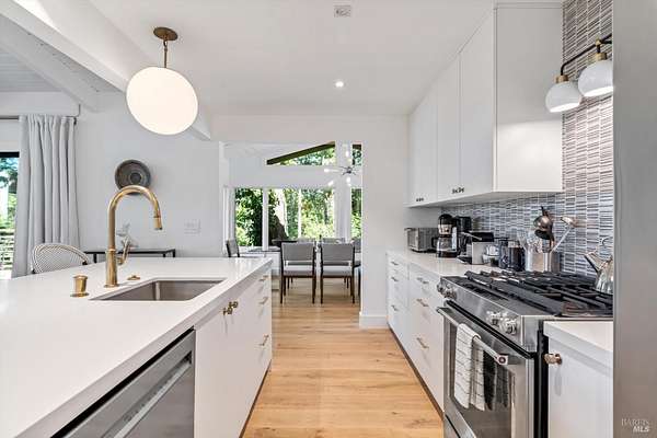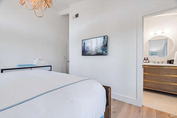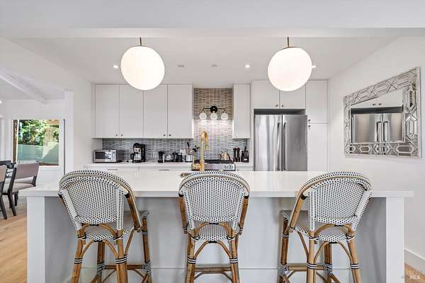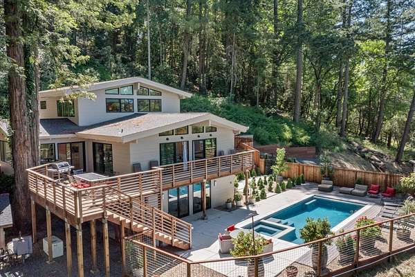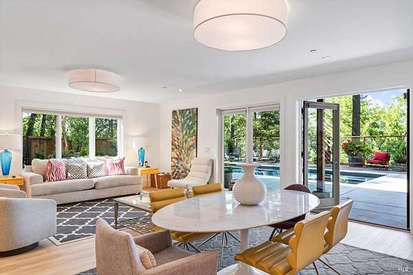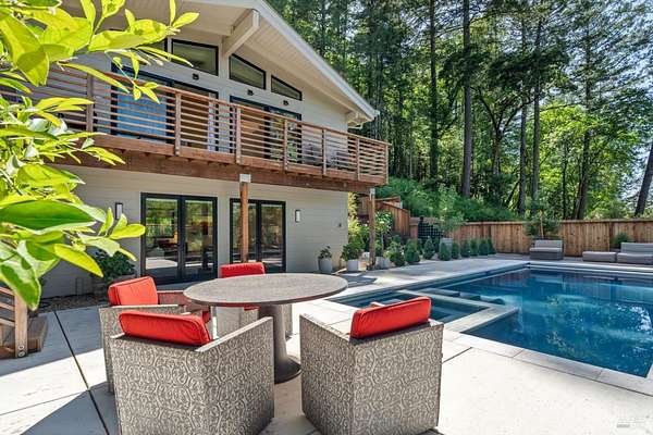 A Stunning Mid-Century Modern Retreat with Mountain Views & STR Eligibility. Perched in the serene western hills of Calistoga and eligible for short-term rental in Sonoma County, this newly remodeled 3-bedroom, 4.5-bathroom, 3,100 sq. ft. mid-century modern home blends timeless design with luxurious modern upgrades and breathtaking indoor-outdoor living. The light-filled main level features a dramatic great room with vaulted ceilings, white oak floors, and three sets of sliding doors opening to a spacious view deck, perfect for entertaining or unwinding while taking in the panoramic mountain vistas. The gourmet eat-in kitchen is a chef's dream, complete with high-end appliances, custom cabinetry, a large island with prep sink. Step outside to discover a standalone spa, creating a resort-like atmosphere. There are three en-suite bedrooms with spa-inspired bathrooms. An additional expansive entertaining space with a full bath, opening directly to the brand-new heated pool with integrated spa , surrounded by nature and privacy, offers seamless indoor-outdoor living. The entire space is fenced for privacy and safety, ideal for guests or families. This home is the perfect blend of style, comfort, and turn-key convenience in the heart of Wine Country.