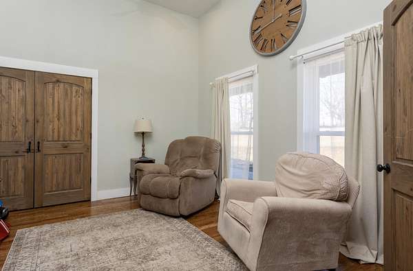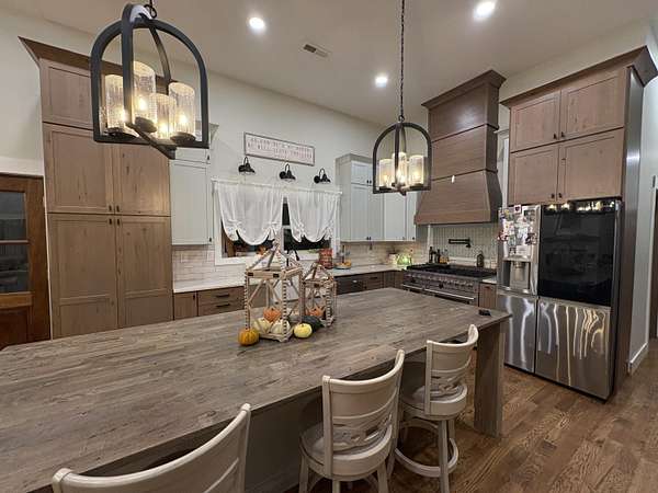 Gorgeous Custom Home on 16.88 Acres - Built in 2023 Welcome to luxury living at its finest. This stunning custom-built 2023 home sits on 16.88 hard-to-find acres, partially fenced and perfectly suited for horses. From the moment you arrive, the charm of the expansive front porch with stamped concrete sets the tone for the quality and craftsmanship found throughout. Step inside and prepare to be impressed. Your first view is absolutely breathtaking. The home features a spacious living room that flows seamlessly into a beautifully designed dining area with shiplap accents and a cozy fireplace, creating the perfect ambiance for gatherings. The large, chef-inspired kitchen offers a double oven, abundant cabinet space, and stunning light fixtures that elevate the entire space. With 4 bedrooms plus a 5th additional room, you'll have endless versatility, ideal for a bonus room, home office, or an extra bedroom. Every detail in this home reflects top-of-the-line luxury, from the finishes to the layout. Entertaining is effortless with the massive back porch, perfect for enjoying the peaceful views of the property. The land itself is exceptional, mostly flat with a gentle slope, offering endless possibilities for outdoor activities, expansion, or equestrian needs. This is a rare opportunity to own a truly remarkable home on acreage that's becoming increasingly hard to find. Don't miss it!