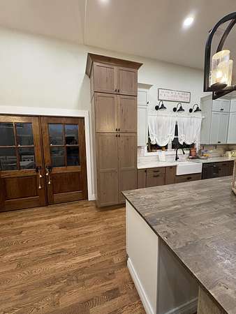 - Bathroom Mirror(s), Kitchen Island, Pantry, Primary Downstairs, Walk-In Closet(s), Walk-In Shower