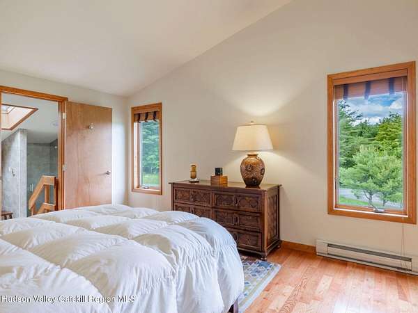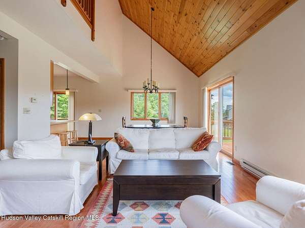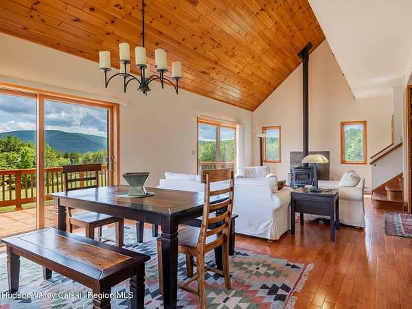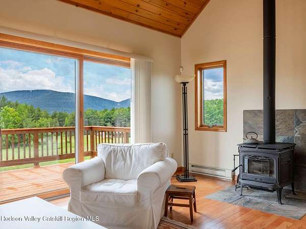 Welcome to this modern, functional and stylish contemporary home. Experience world-class skiing, golfing, and dining within minutes of your doorstep, plus easy access to both Windham and Hunter Mountain. Also, Conifer Lake is just a short distance away, and your ownership includes exclusive lake access rights for unlimited summer recreation. The entire house is climate controlled with central AC for year around comfort. Step inside and you will be welcomed by a large open space living area with abundant natural light filtering through the generous amount of glass windows and doors. Solid cherry wood flooring throughout the house. On the main floor is the kitchen, dining area, living area, a bathroom, laundry closet, library, and a wood-burning stove. On the top floor is a bedroom, bathroom, master bedroom wit a bathroom, and expansive closets. On the ground floor you will find 2 bedrooms, 2 full baths, den with a TV, library, wine cellar, and extra closet space. Step outside to enjoy the new decks that will bring the serene mountain views to your fingertips. Additionally, the property has a row of spruce trees planted to serve as a windbreaker on the open fields, a dedicated wood shed and an oversized one car attached garage. Stop in to say hello. This might just be your dream home and the beginning of a new lifestyle for you. A 3D Walkthrough Tour is available in the digital Lookbook or by request from the listing agent.
