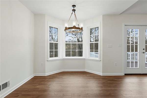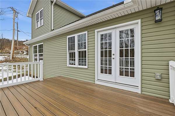 At the heart of the home is an impressive chef's kitchen, complete with natural stone countertops, premium appliances, a striking tile backsplash, and an oversized layout ideal for hosting. The kitchen flows seamlessly into the main living and dining areas and opens directly to a spacious composite deck--creating an ideal indoor-outdoor connection for entertaining or relaxing while enjoying peaceful views of the surrounding countryside and frequent wildlife.