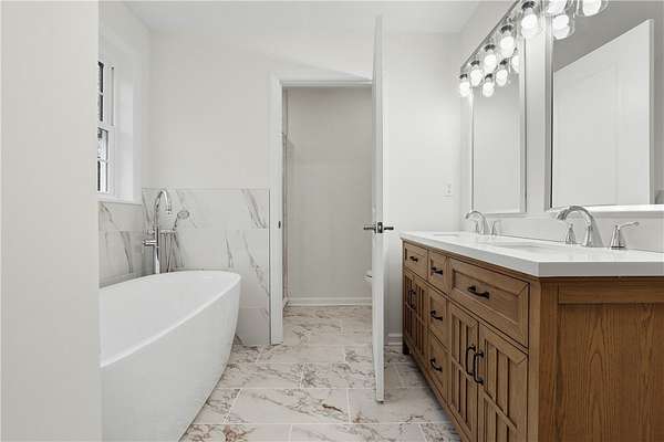 The first-floor primary suite serves as a private retreat, featuring a spa-inspired luxury bath, generous walk-in closets, and convenient access to the main-level laundry. A flexible main-level room provides the perfect option for a home office, den, or additional dining space. Upstairs, three spacious bedrooms and a full bath offer comfortable accommodations for family or guests, while the open hallway overlook adds architectural character and enhances the home's airy feel.